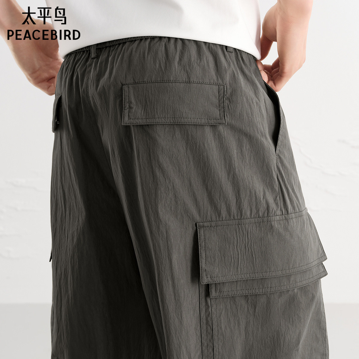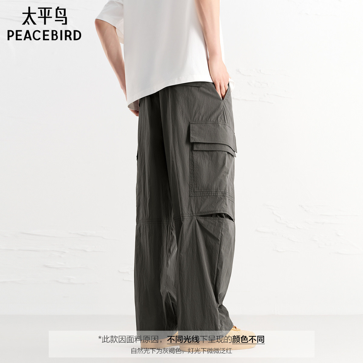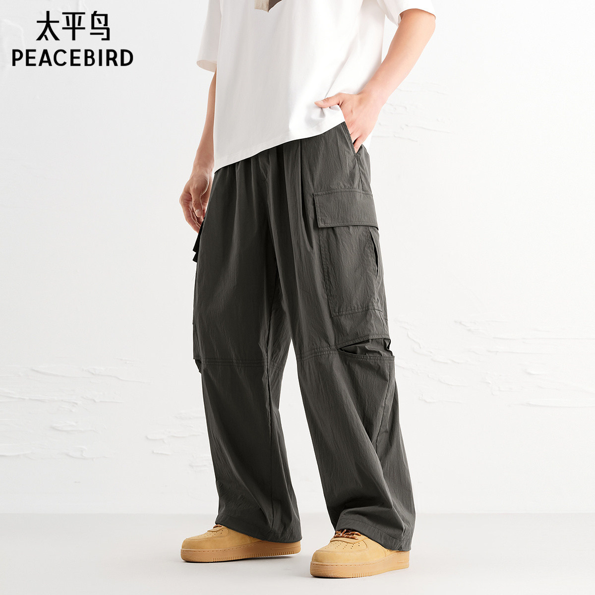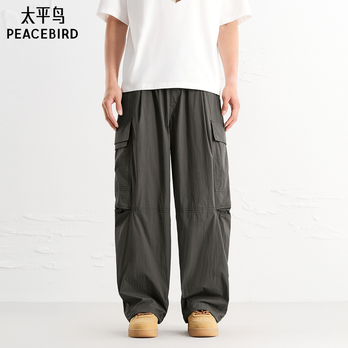 太平鸟男装纯色休闲裤秋季潮流潮牌直筒裤子工装伞兵裤
