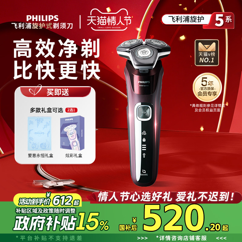 【政府补贴】飞利浦5X男士电动剃须刀刮胡刀胡须刀送便携圣诞礼物
