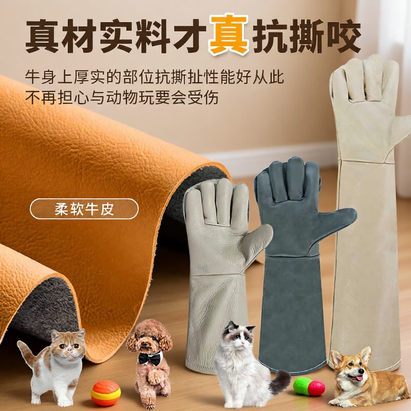 防咬手套防狗咬防猫抓训狗训犬宠物训练牛皮加厚防撕洗澡洗猫防火