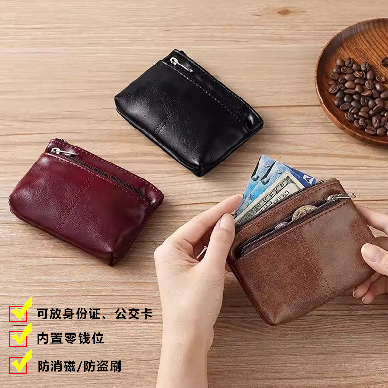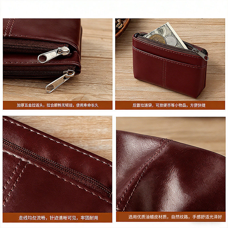 外贸出口尾货女士迷你拉链钱包真皮头层牛皮清仓手拿手抓女包卡包