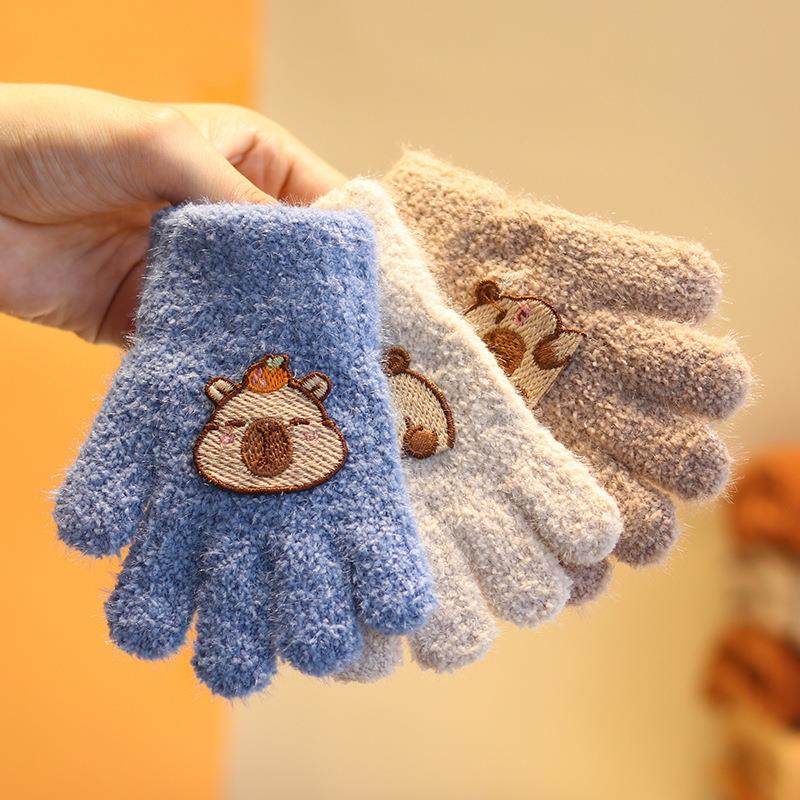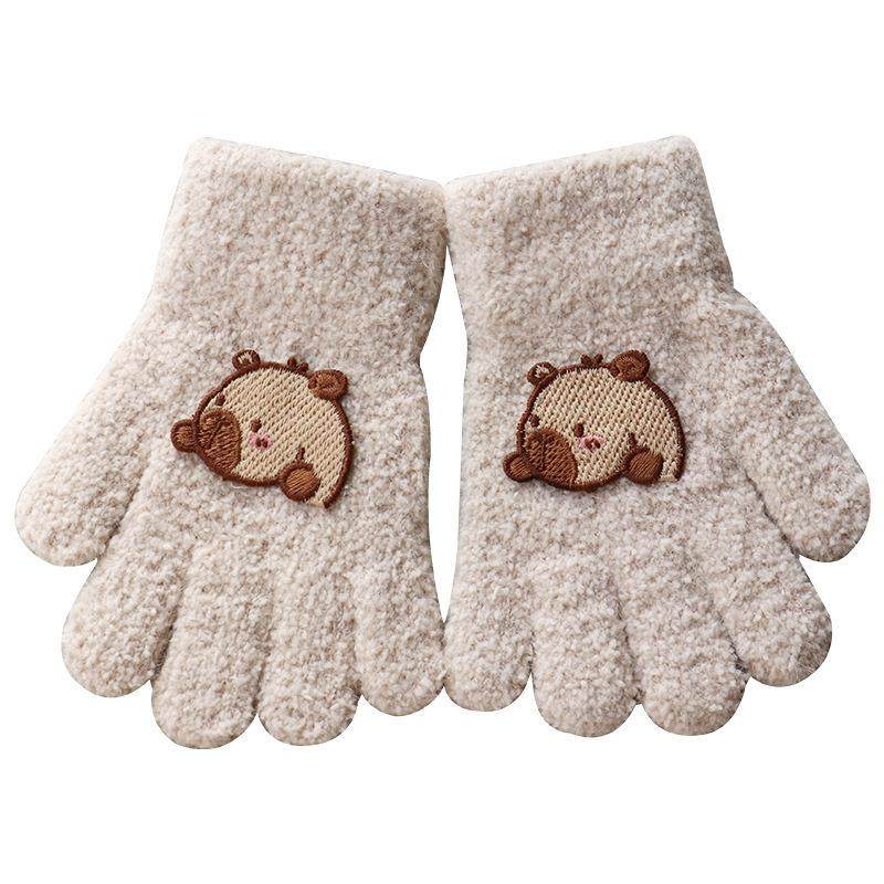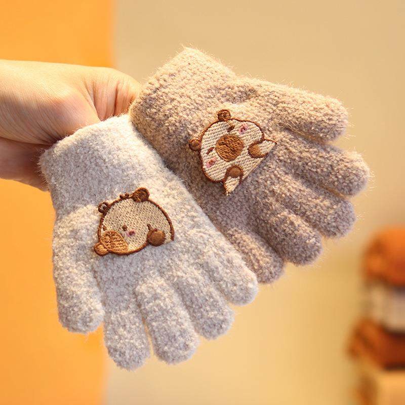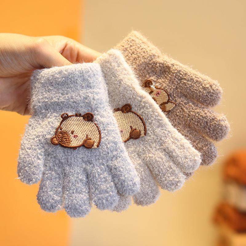 尼多熊2025儿童手套宝宝保暖手套男女童五指手套针织分指手套秋冬