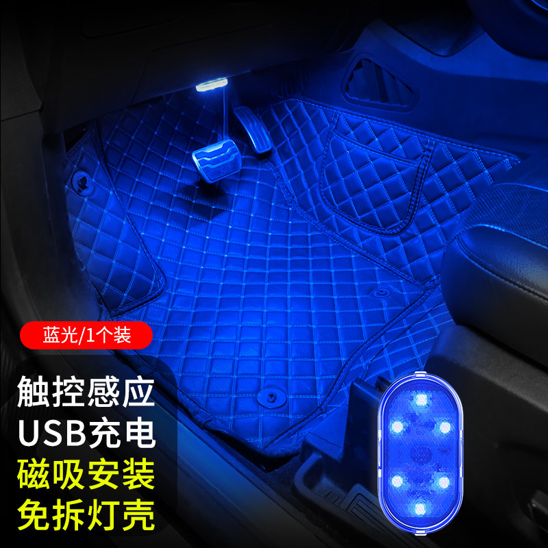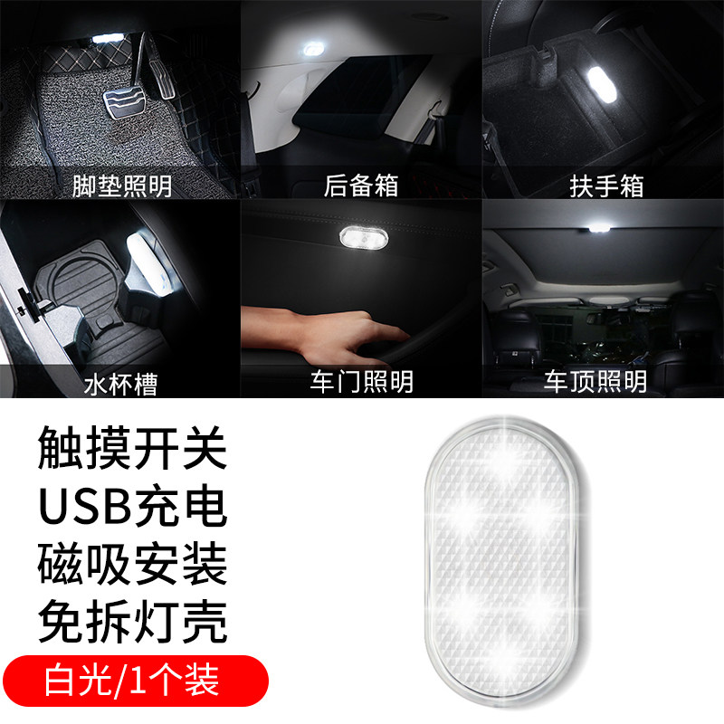 车内饰led灯氛围灯感应灯免接线后备箱照明灯车载usb小夜灯白光无线汽车触摸灯免改装饰用品大全