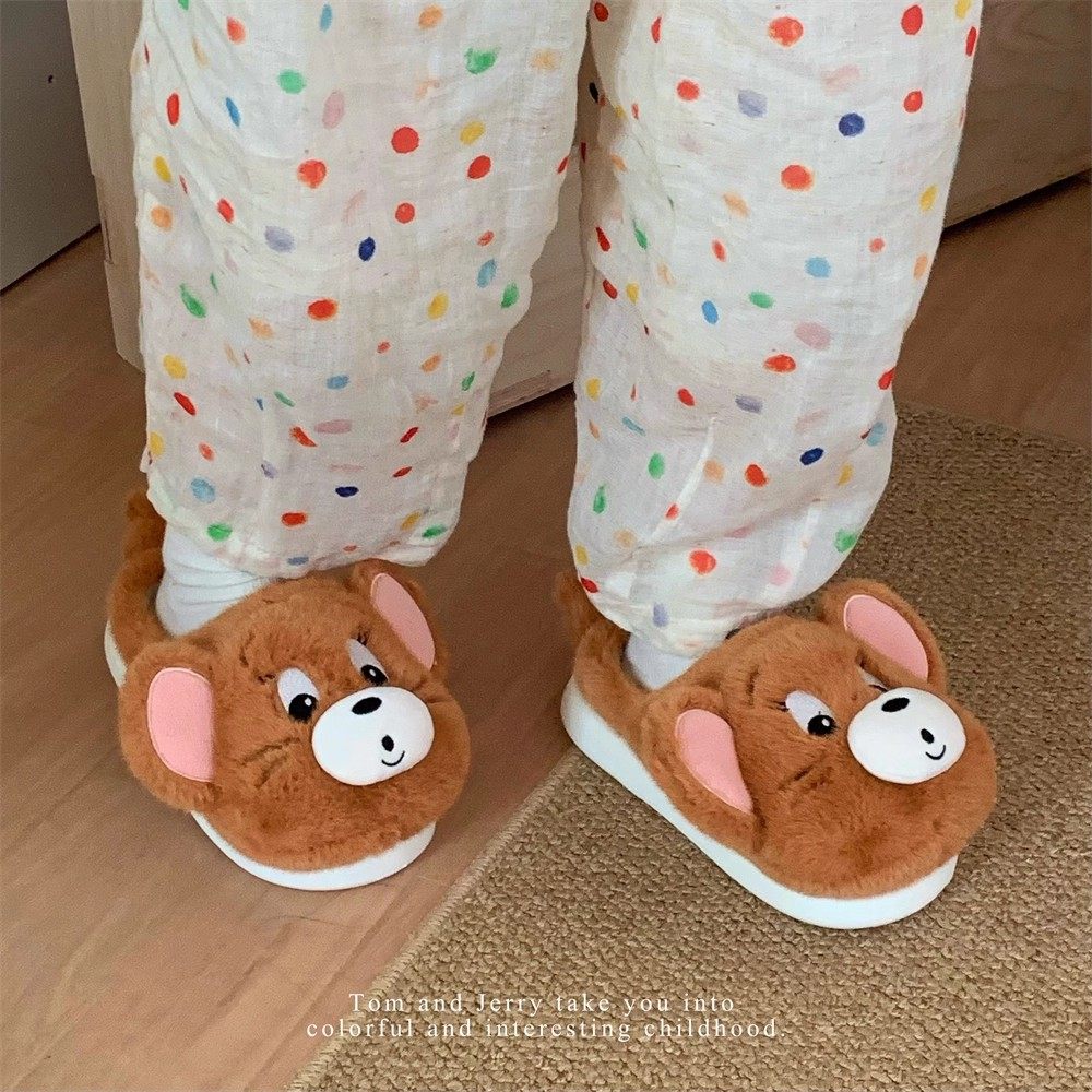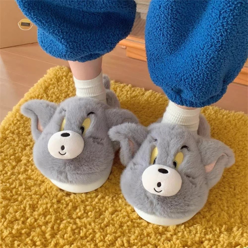 猫和老鼠汤姆杰瑞情侣棉拖鞋男女冬季保暖毛毛鞋标准全包棉鞋防滑