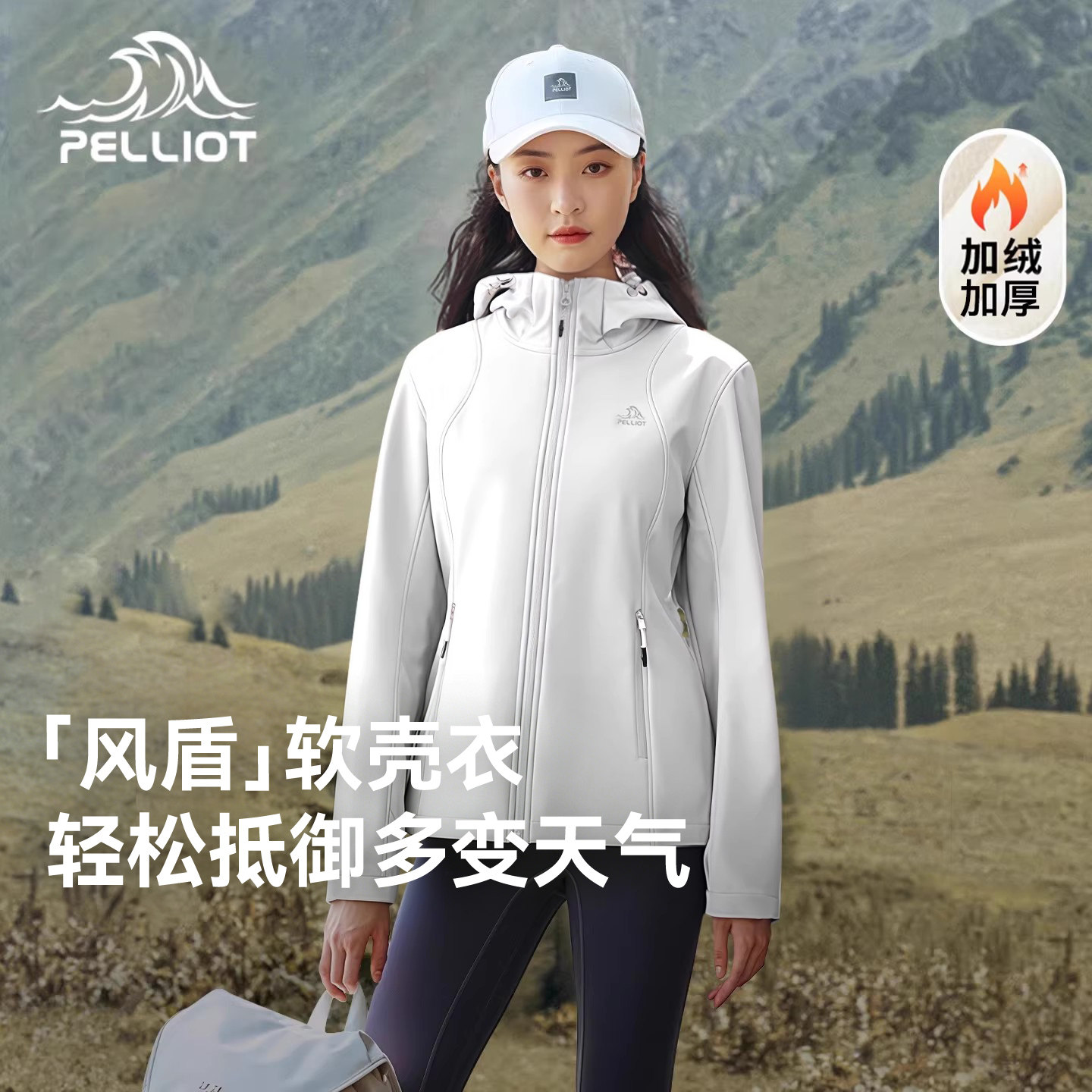 伯希和户外软壳衣女加绒防风运动收腰夹克上衣连帽冲锋外套登山服