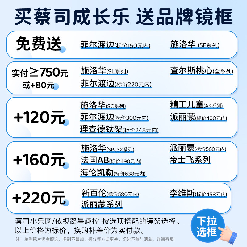 蔡司成长乐儿童防控离焦近视镜片钻立方防蓝光铂金膜学生配眼镜片