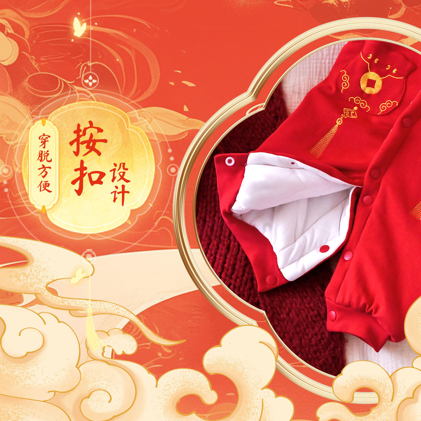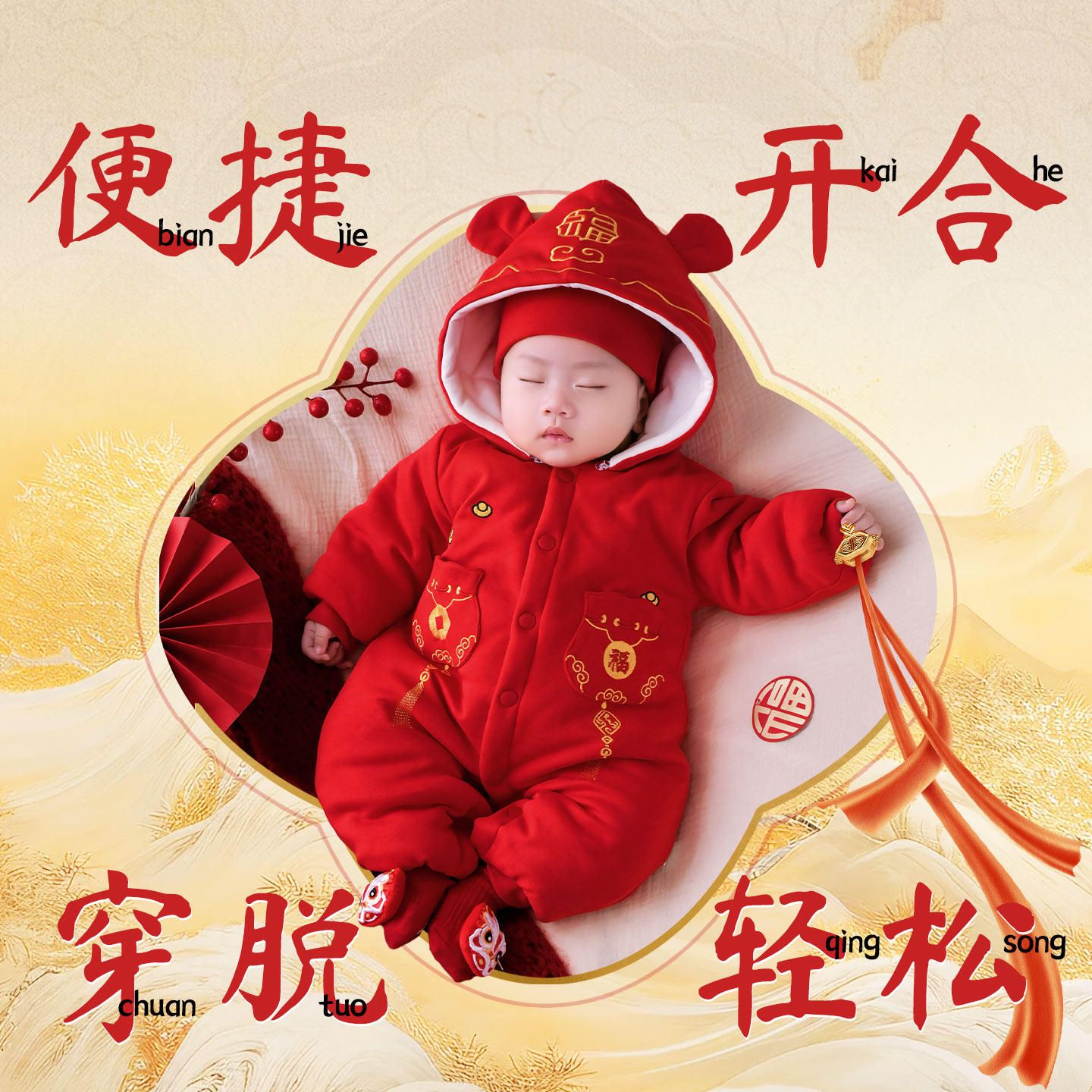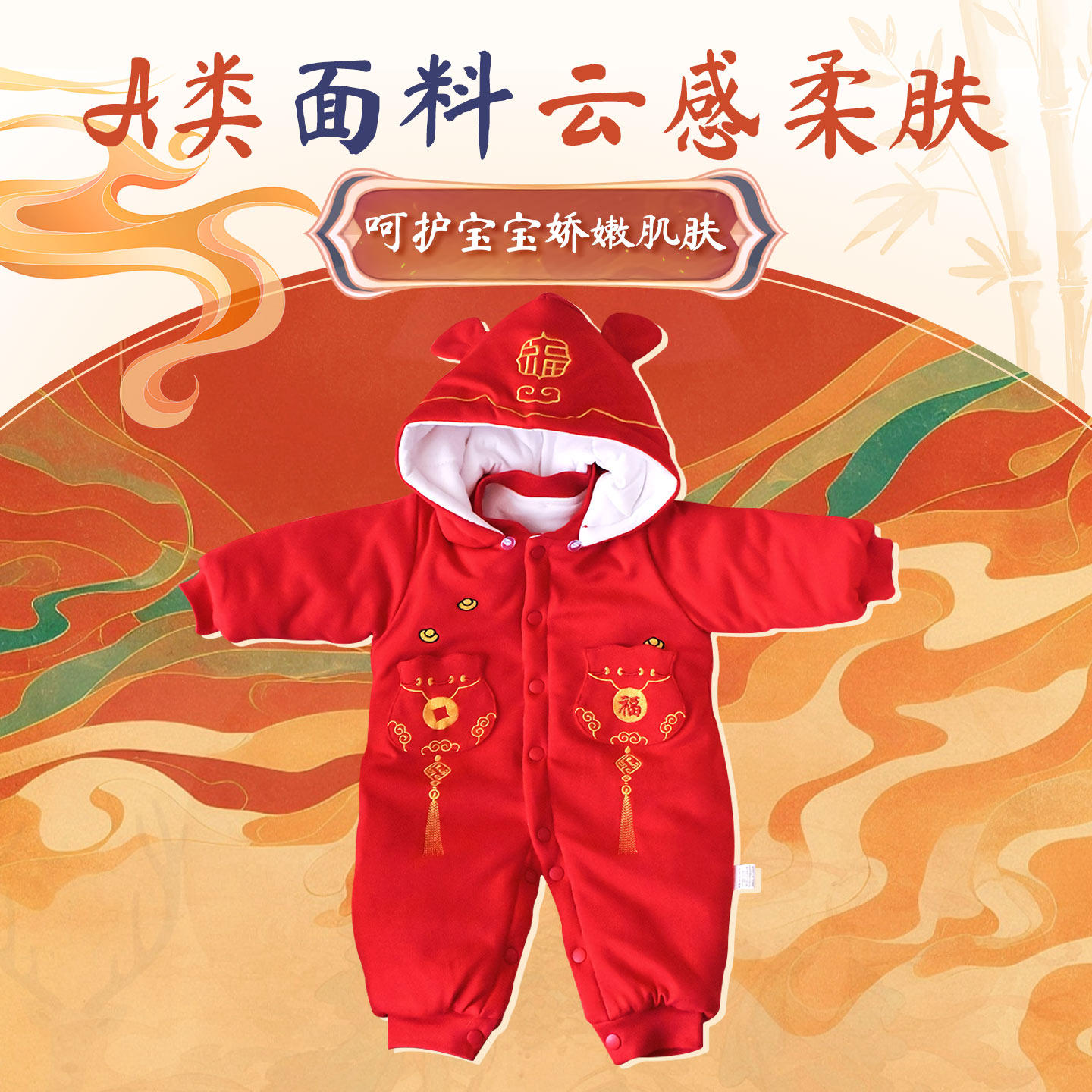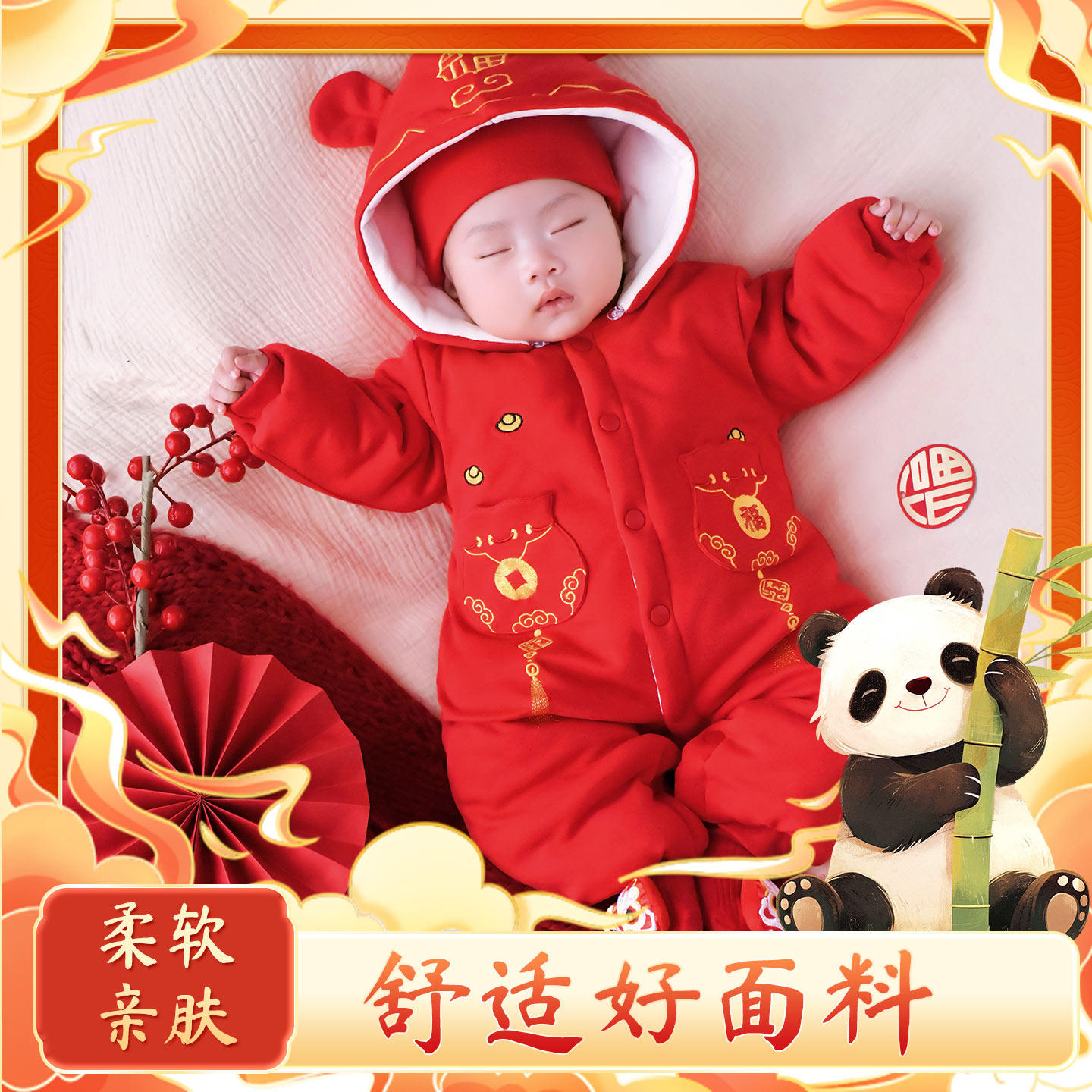 婴儿连体衣冬季加厚新生宝宝喜庆中式拜年服大红色哈衣龄棉服新年