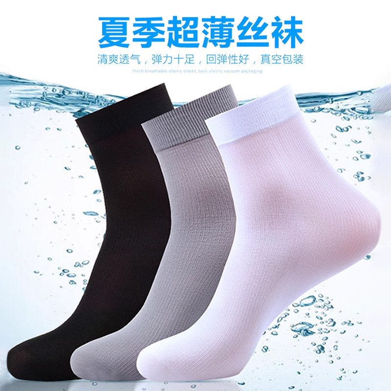 袜子男款短丝袜夏季超薄款吸汗透气冰丝短袜春秋款防臭中筒袜短筒