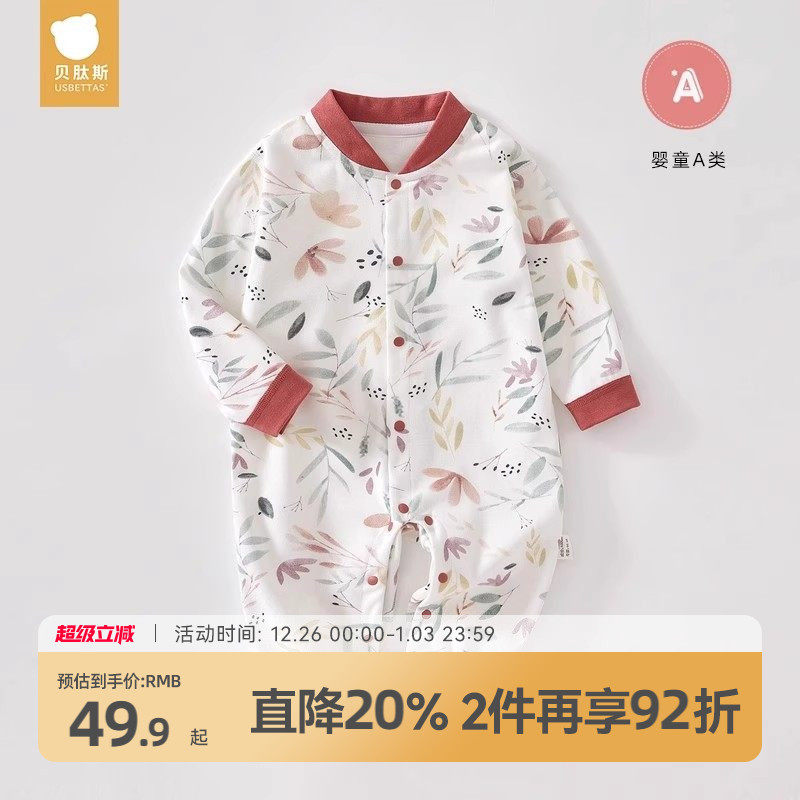 贝肽斯婴儿衣服春秋季连体衣纯棉长袖新生儿哈衣爬服宝宝四季睡衣