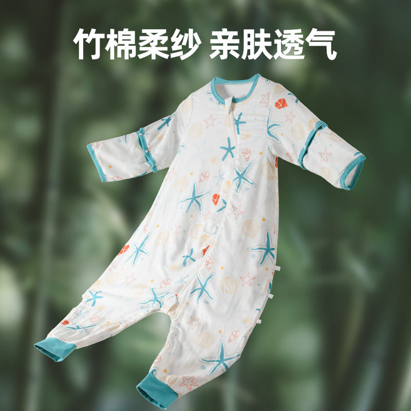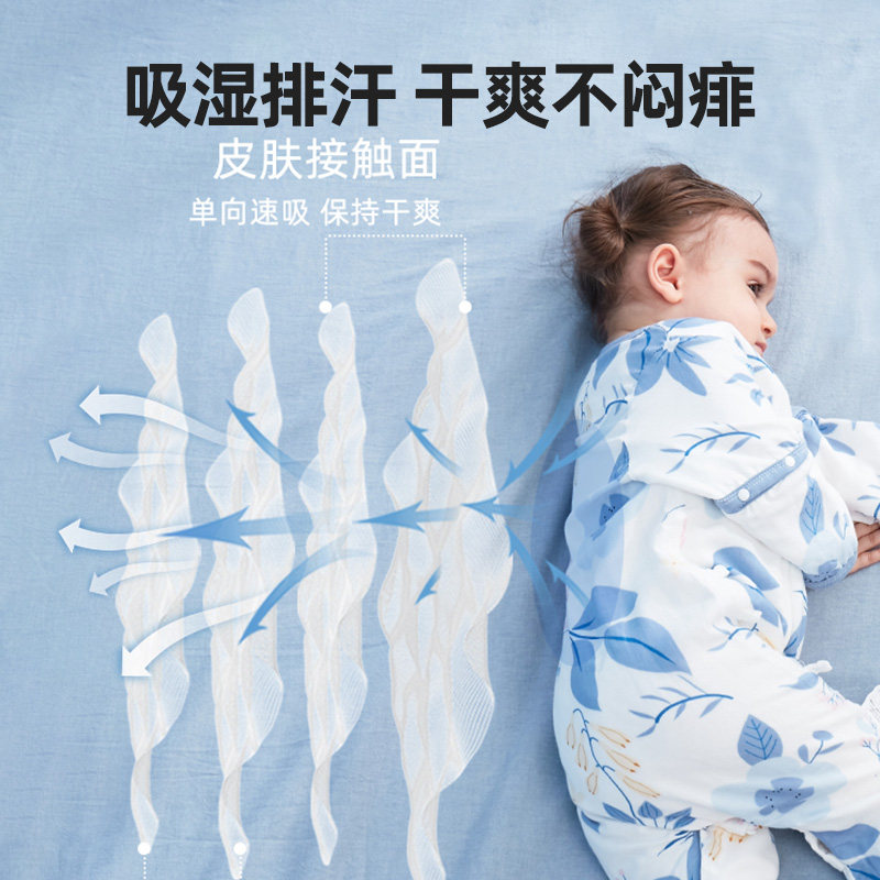 婴儿纱布睡袋春秋四季通用夏季睡衣宝宝儿童防踢被棉纱可拆袖竹棉