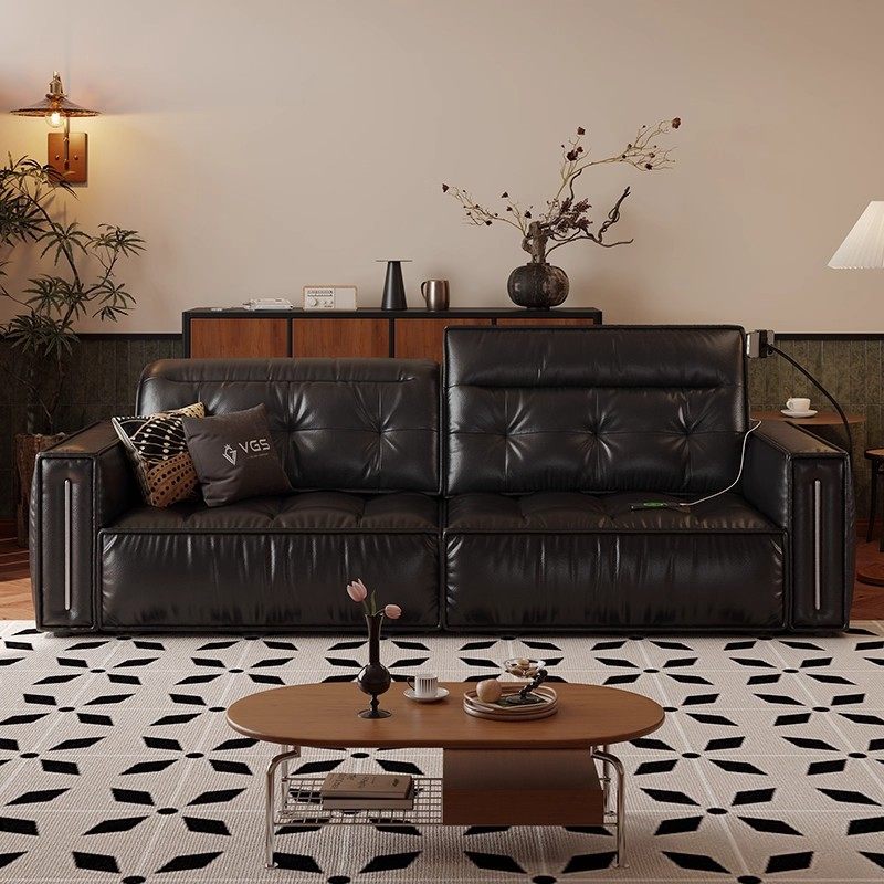 左右钢琴键沙发2025新款客厅零靠墙功能电动大象耳朵黑色沙发6080
