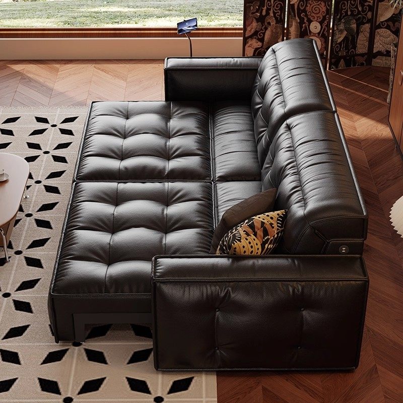 零靠墙黑羽电动沙发真皮可调节伸缩法式复古客厅多功能直排沙发床