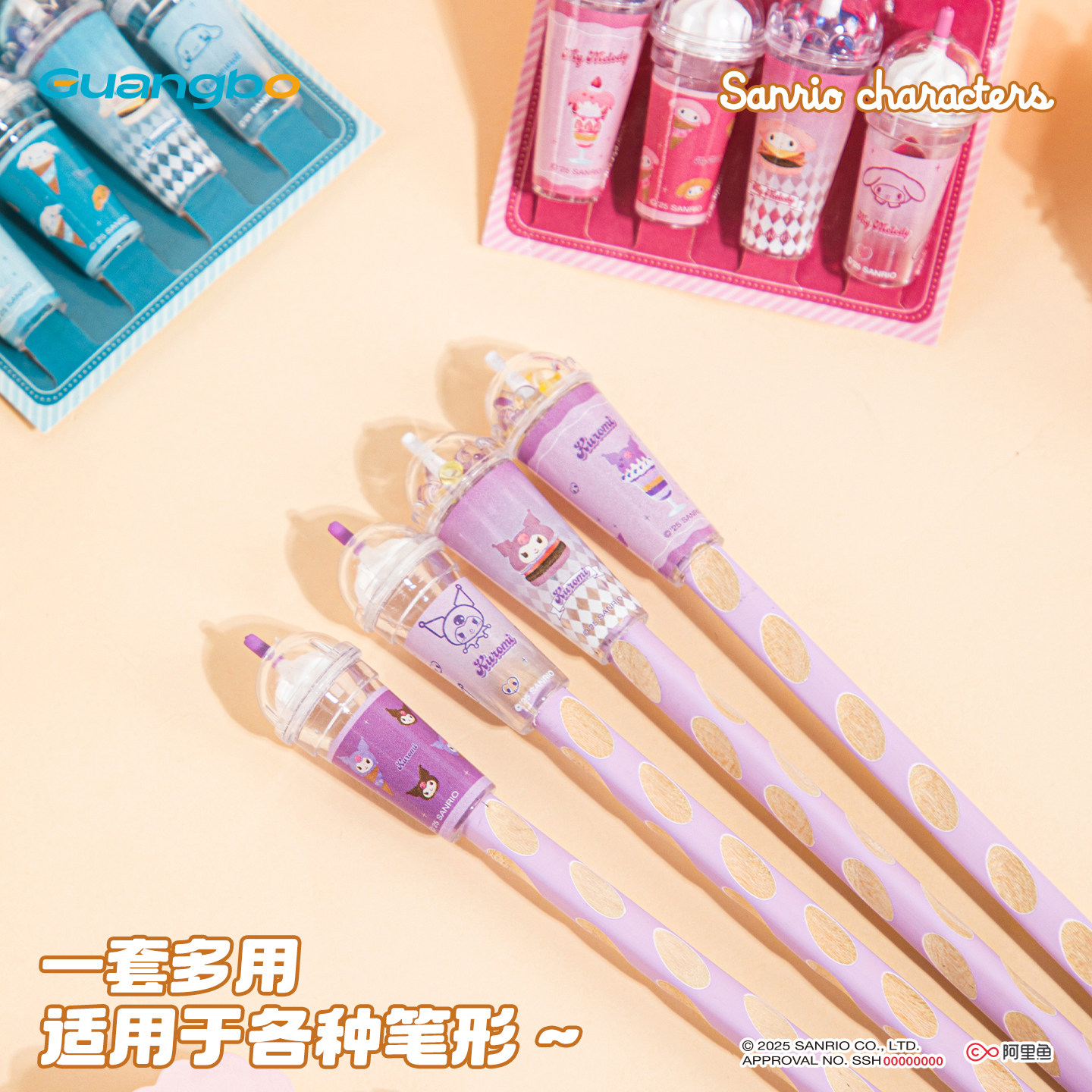 正版三丽鸥笔帽库洛米冰淇淋铅笔保护帽美乐蒂玉桂狗可爱学生创意笔头加长延长器初学者洞洞铅笔盖盖子防戳