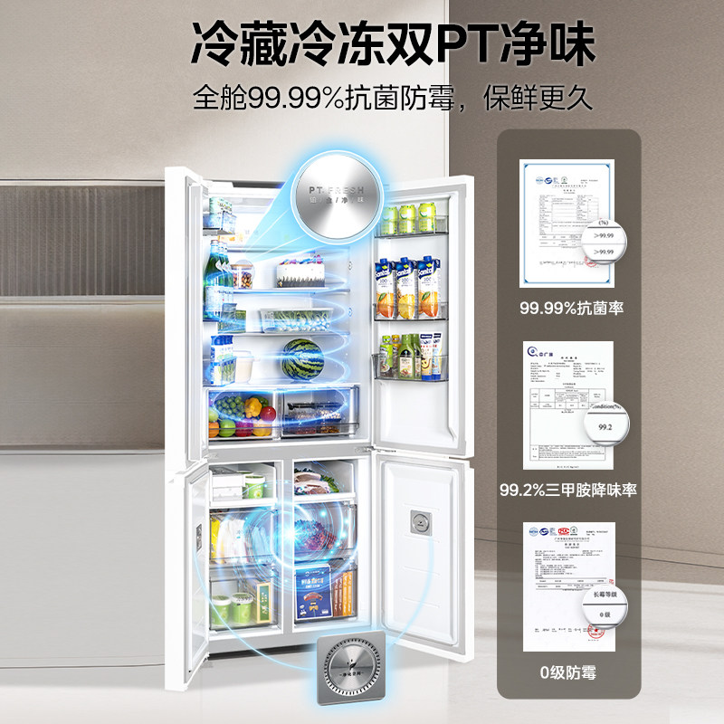 美的283三开门电冰箱一级能效家用变频风冷无霜小型超薄官方租房