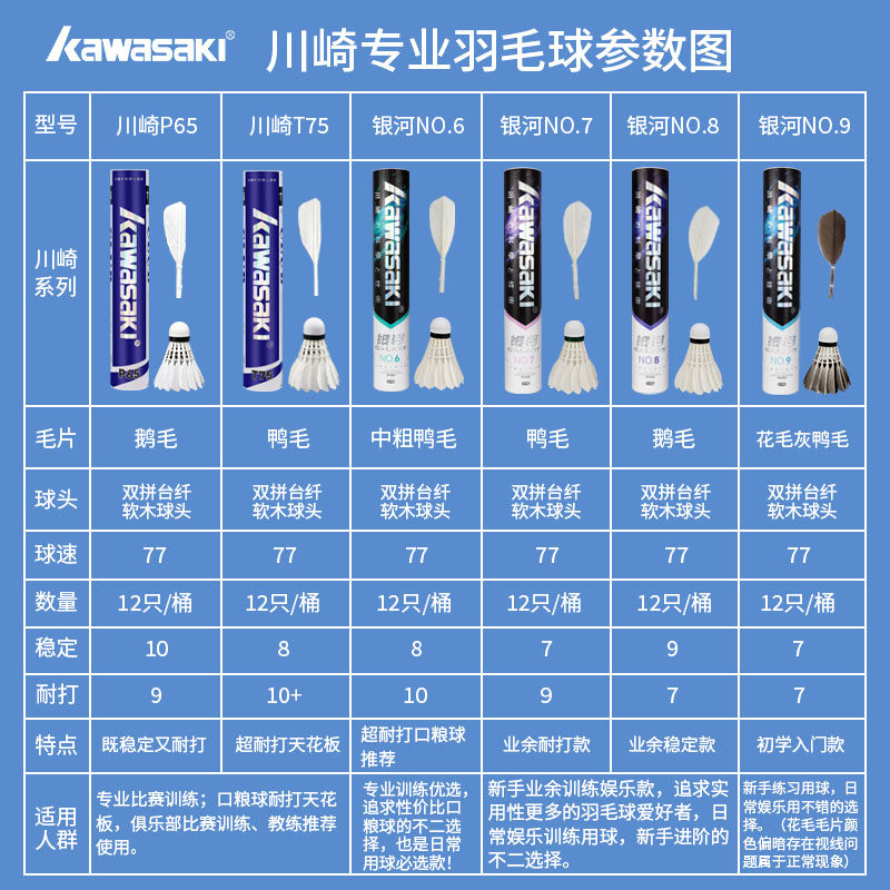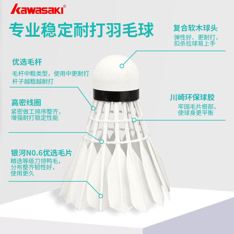 川崎正品羽毛球专业训练耐用飞行稳定耐打王比赛用球硬球头12只