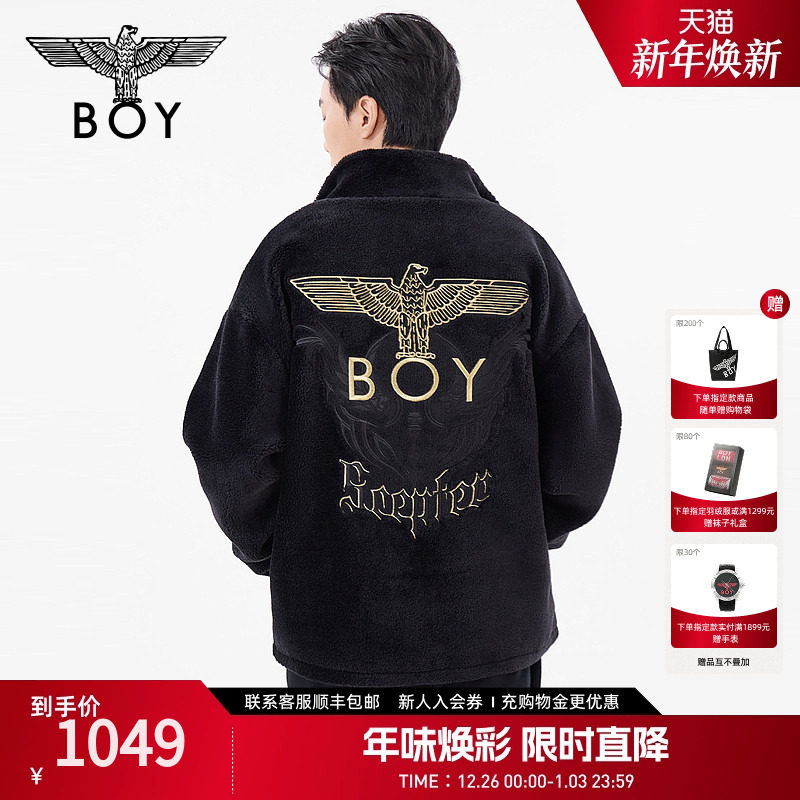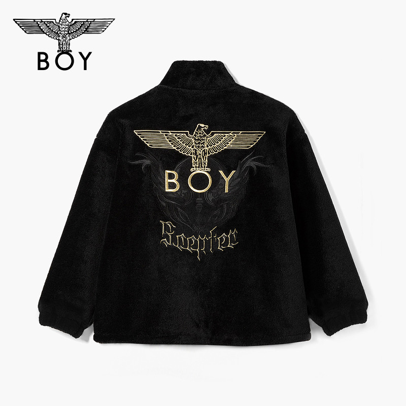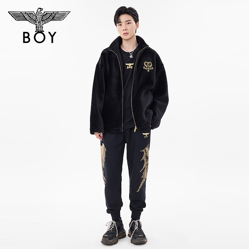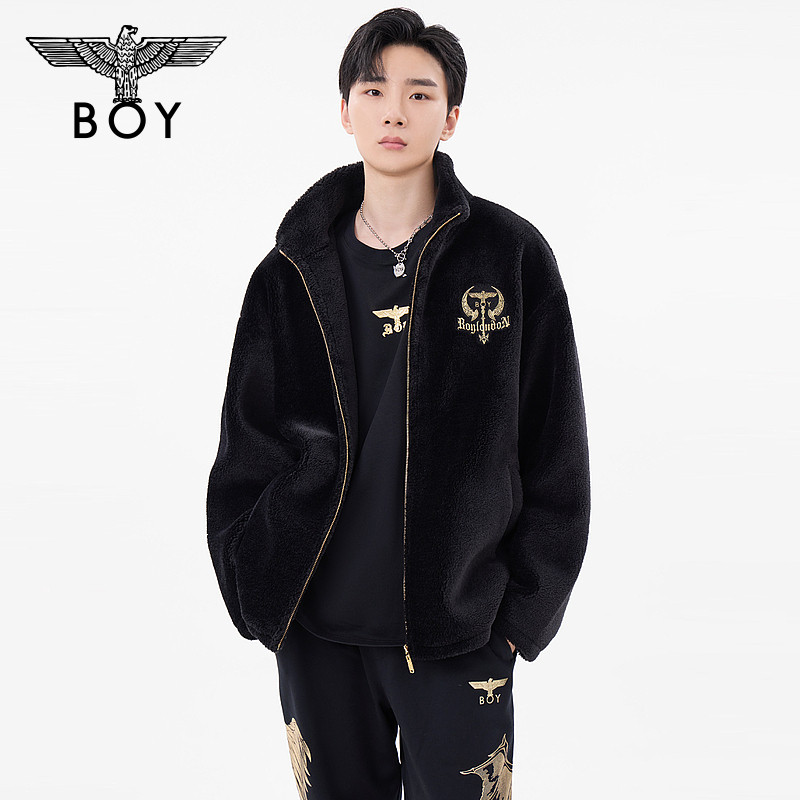 BOYLONDON冬情侣款黑金重工刺绣朋克潮酷保暖外套N23021