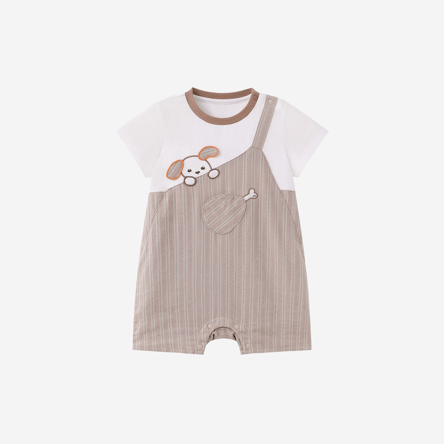 英氏婴儿连体衣男童女童夏季新款短袖哈衣宝宝假两件可爱休闲衣服