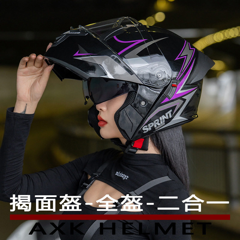 3C认证摩托车全盔男冬季保暖女电动车揭面头盔四季通用双镜安全帽