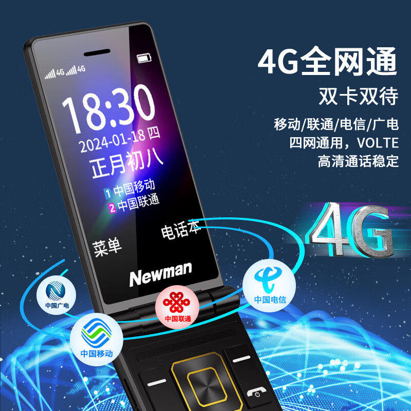 【官方旗舰店】纽曼W69双屏4G全网通翻盖手机老人机老年手机大屏大字大声学生男女士商务超长待机按键非智能