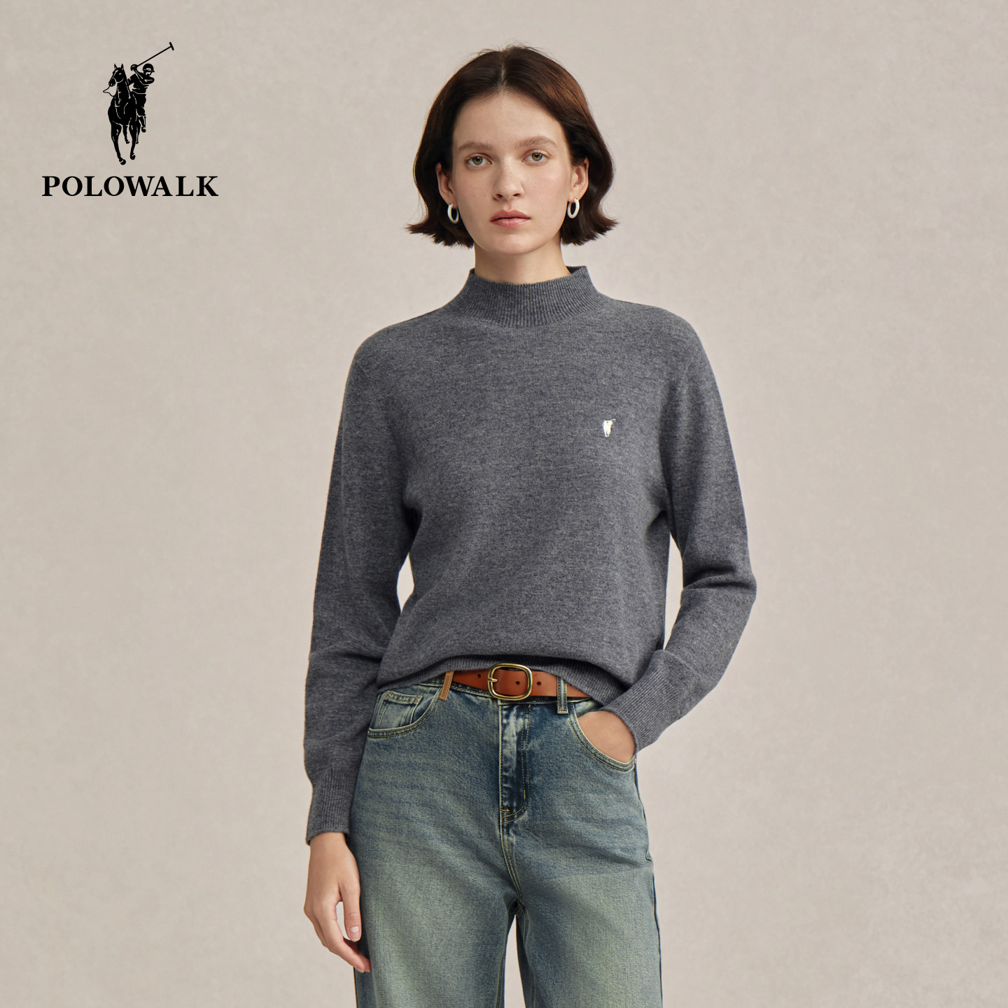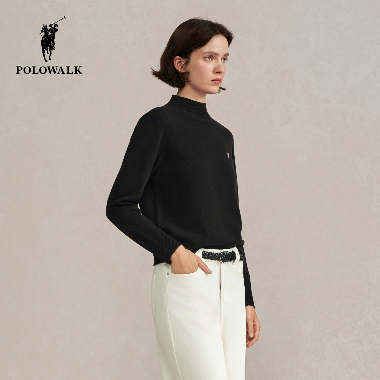 【100%绵羊毛】POLOWALK女式羊毛衫2025冬季新品内搭半高领上衣女