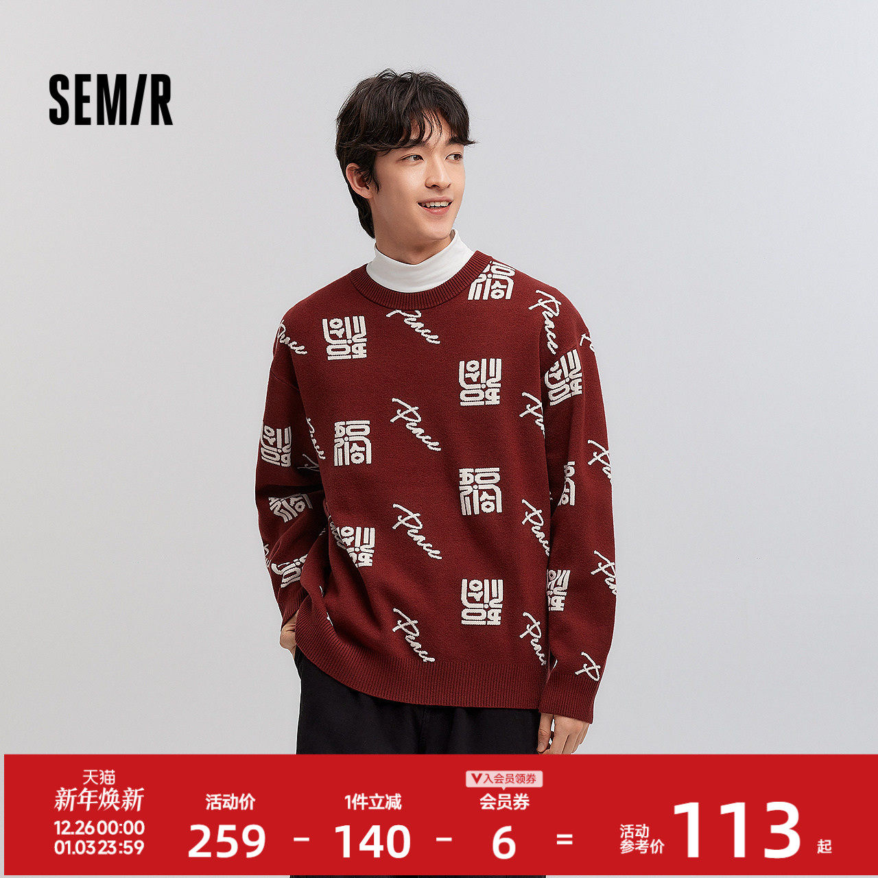 [商场同款]森马毛衣男新年红色提花针织衫2025春新款情侣毛衫宽松