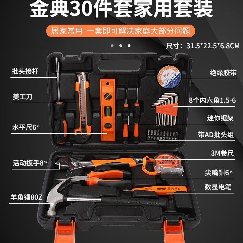 跨境工厂30件套家用碳钢工具箱套装家装手动汽修组合工具手提