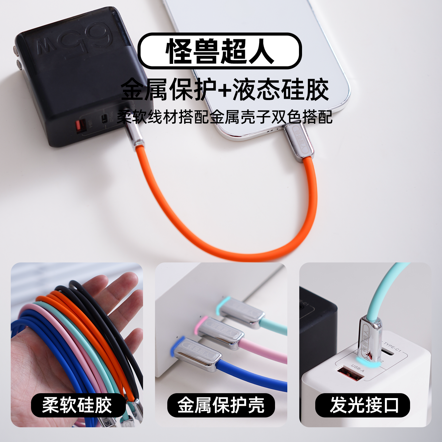 怪兽超人丨充电宝短线20cm快充240W数据线适用iPhone17promax苹果16三星华为小米双CtoC闪充typec手机充电线