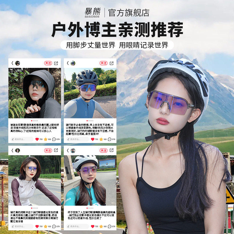 暴熊骑行眼镜女炫彩变色抱爆专业户外运动防风护目男款官方旗舰店