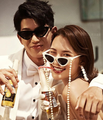 个性时尚潮拍婚纱照摄影道具圆形黑墨镜情侣写真外景拍照造型眼镜