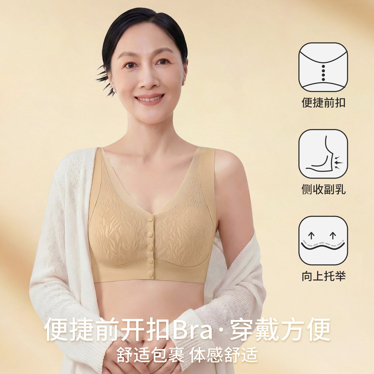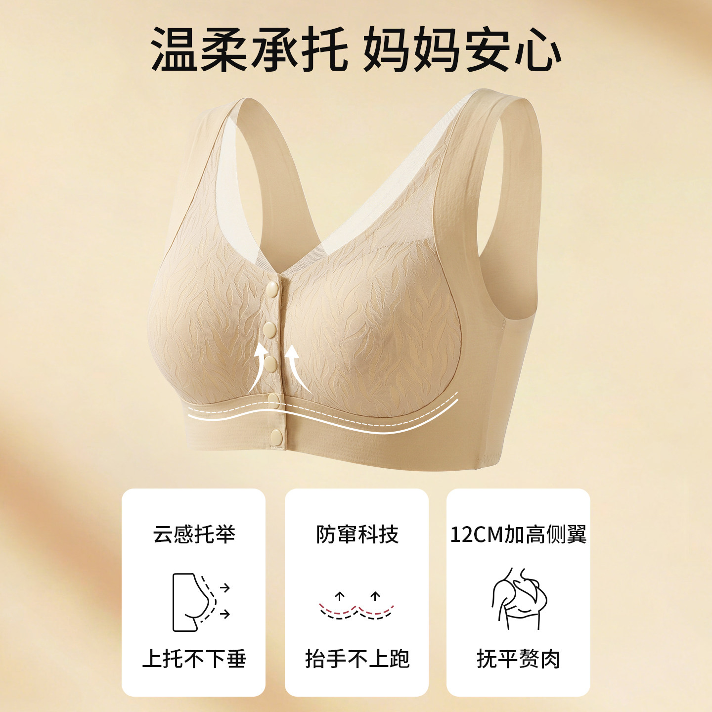 粉底液妈妈内衣文胸无钢圈提拉聚拢承托防下垂中老年人专用收副乳