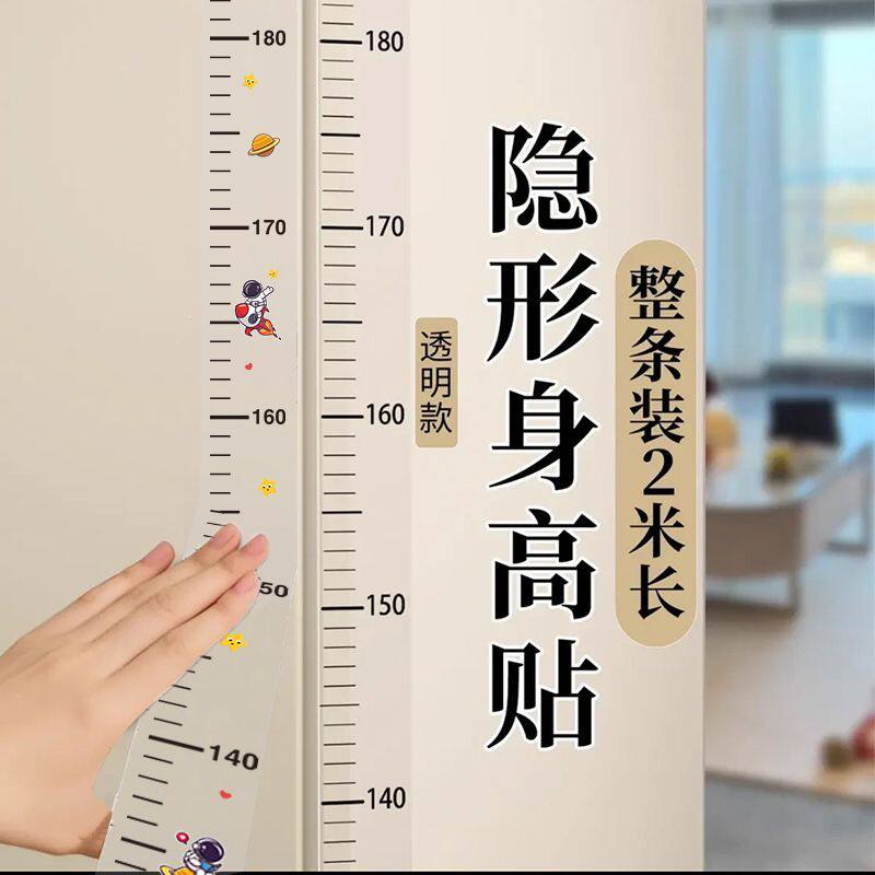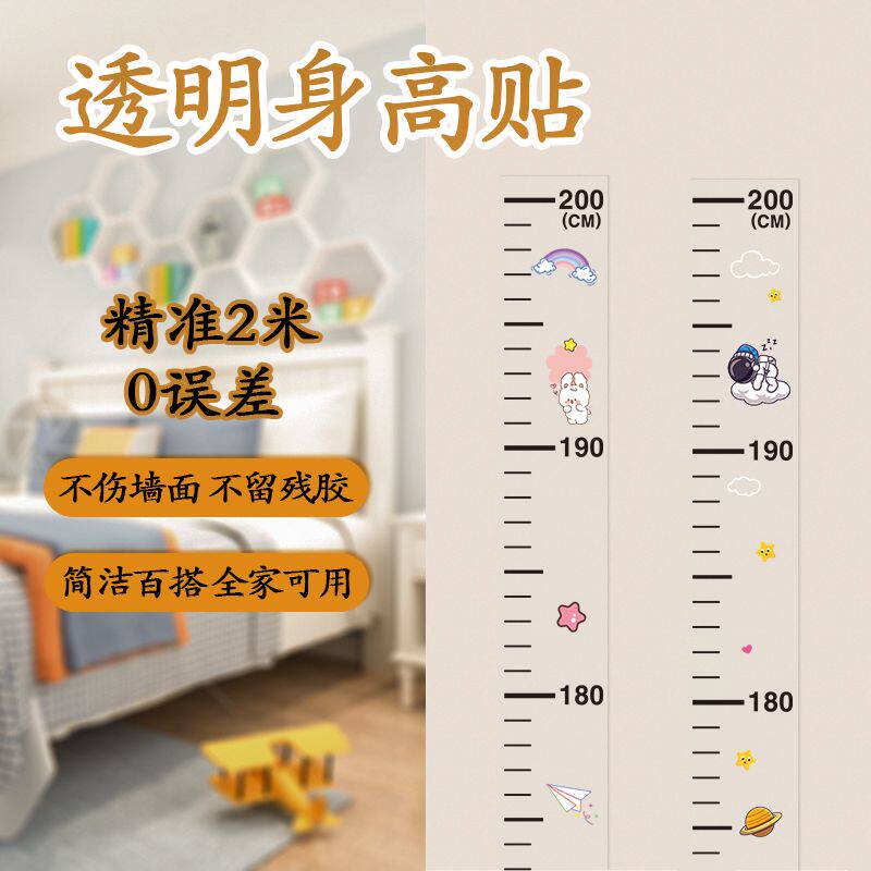 极简风身高测量墙贴透明身高贴不留胶不伤墙可移除儿童身高尺神器