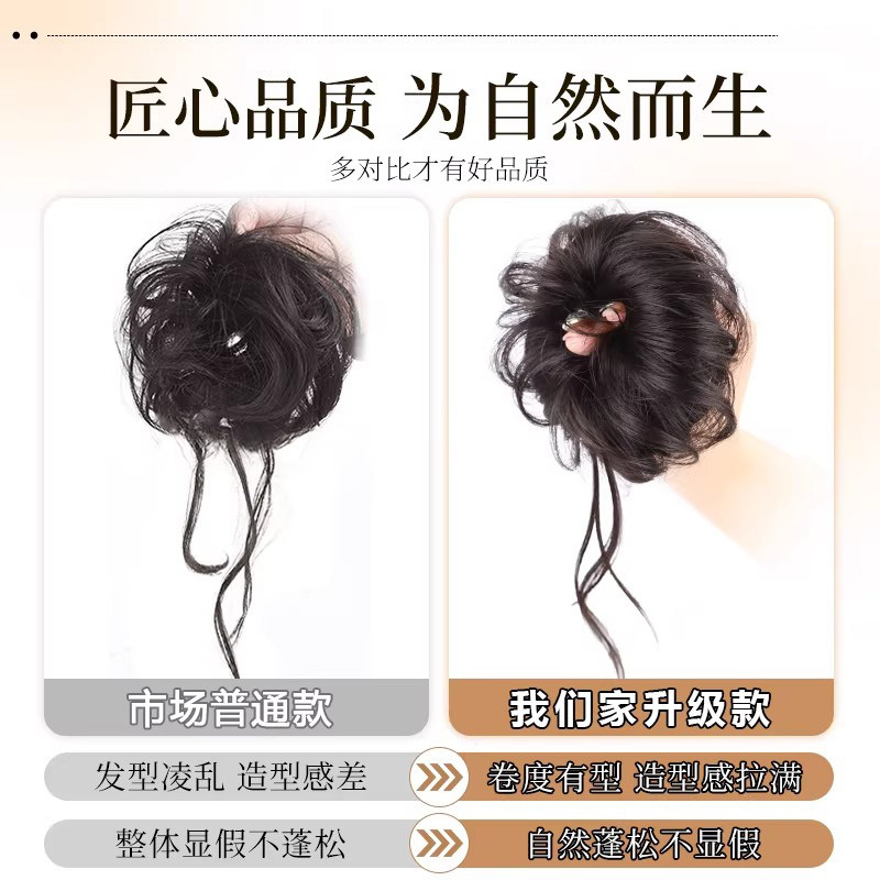 低扎丸子头假发鸡毛头抓夹盘发发包慵懒感造型头饰自然蓬松后脑勺