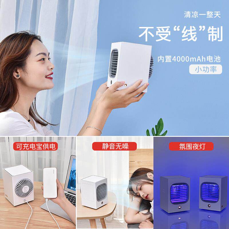 可摇头小型风扇迷你空调冷风机桌面学生宿舍用便携式移动办公室静