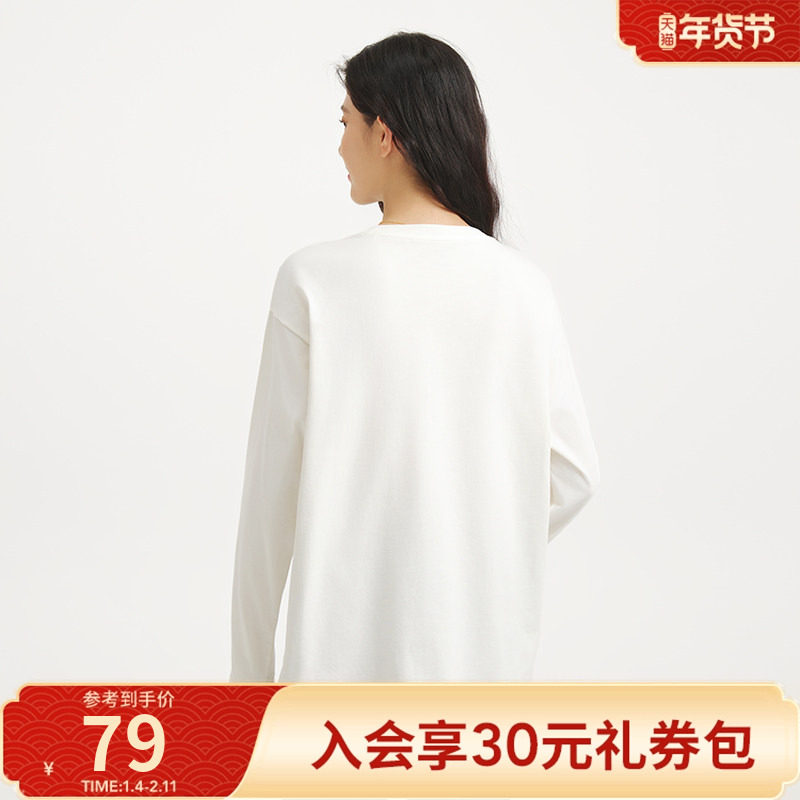 【西高地联名】热风2025年秋季新款女士工艺印花宽松纯棉长T恤