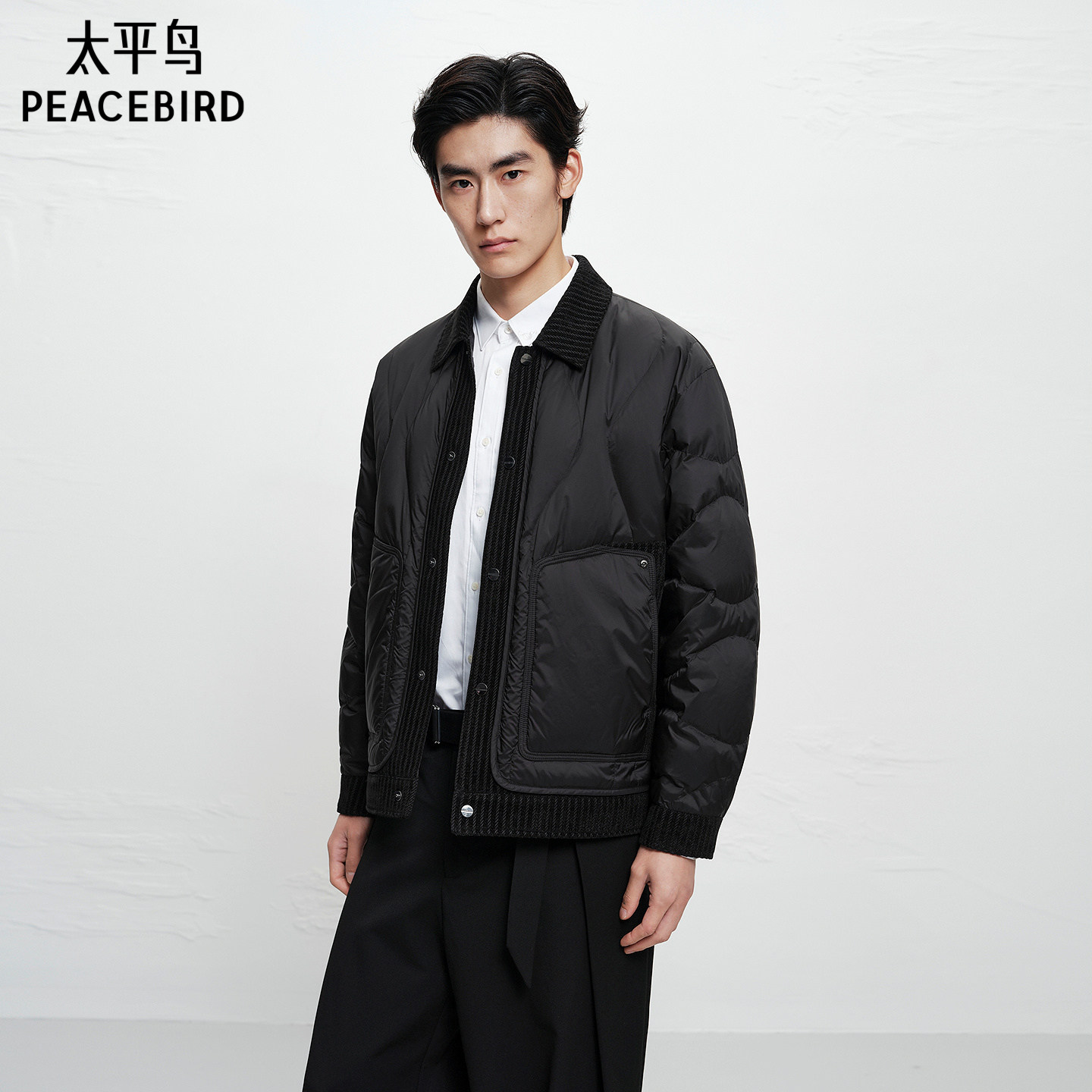 【商场同款】太平鸟男装衬衫式羽绒服新款轻薄羽绒外套B2ACF420D