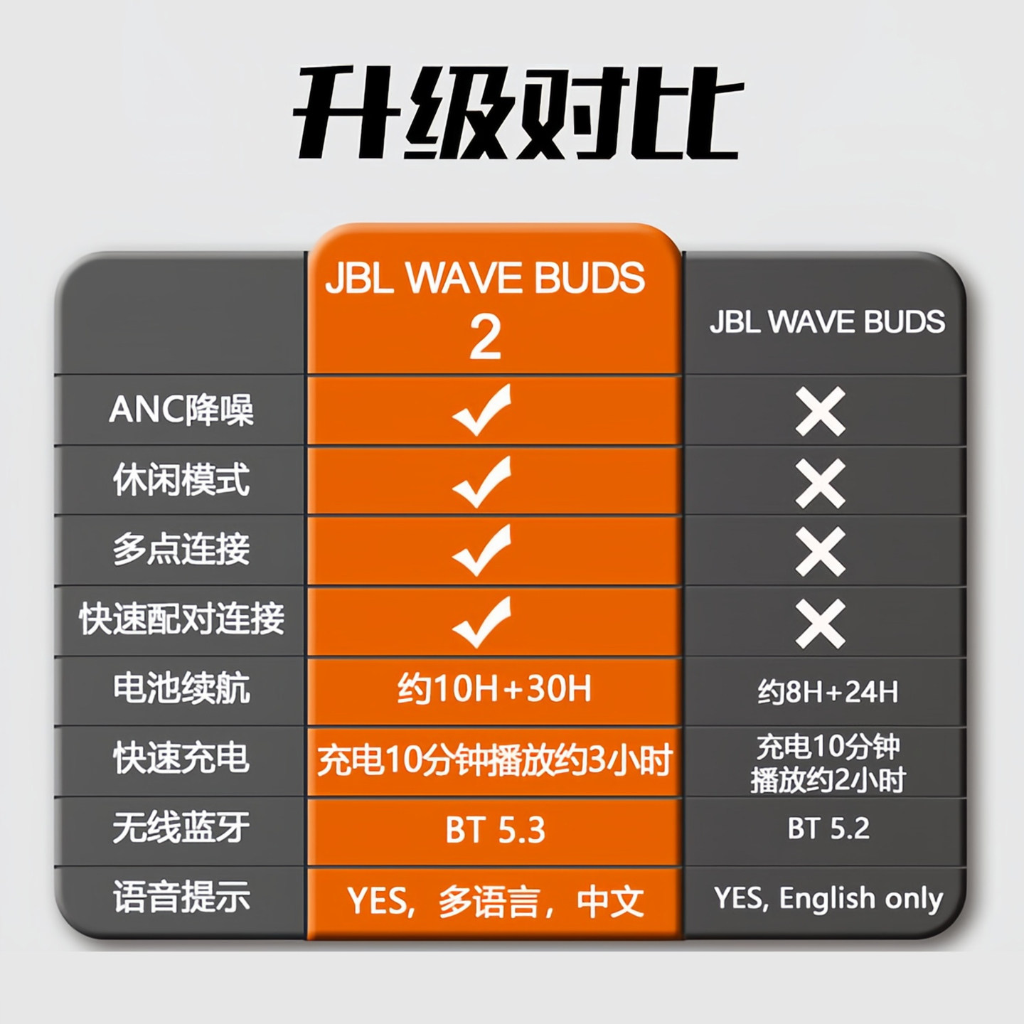 JBL WAVE BUDS2二代无线蓝牙耳机主动降噪入耳式耳塞2025新品