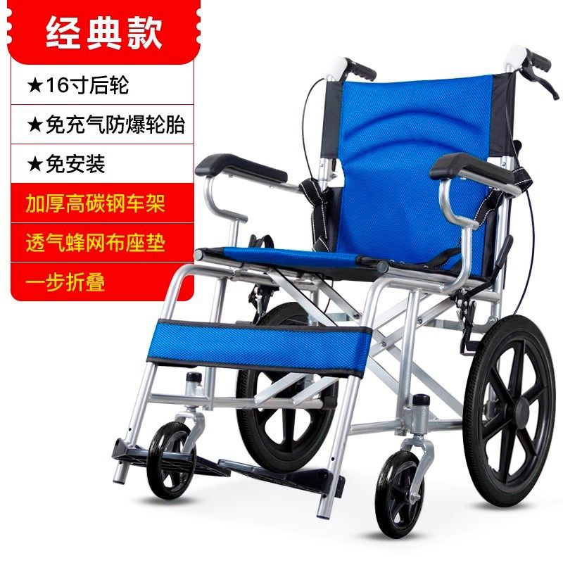 三三八手动轮椅车轻便折叠式老人旅行老年人小型加固手推车代步车