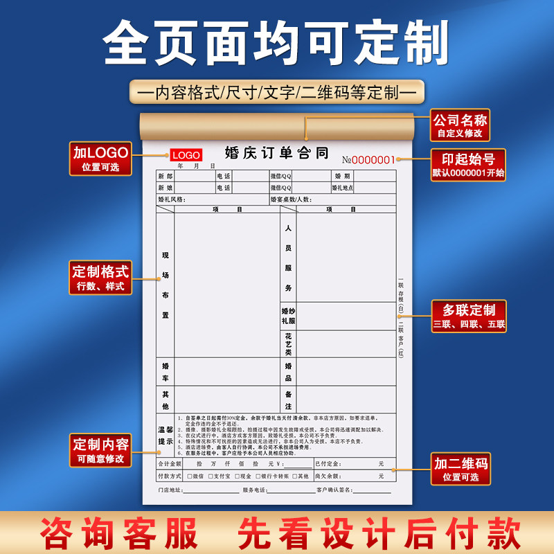 婚庆合同婚车公司车队订单本签单收款单婚纱礼服租赁协议婚礼收据