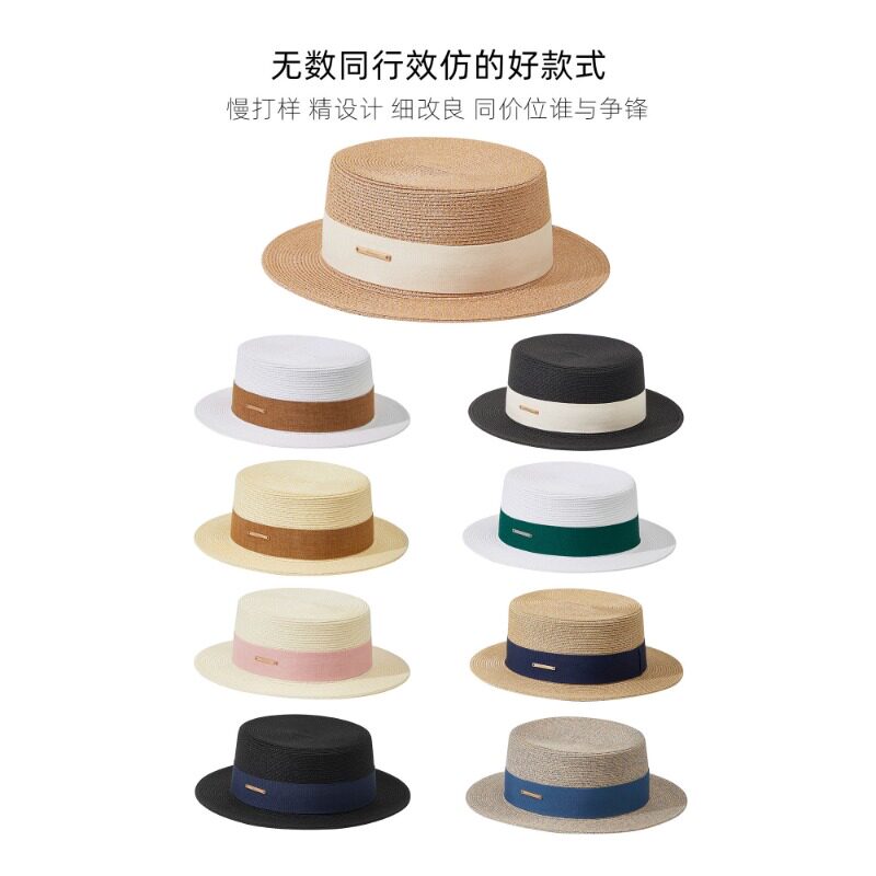 平顶草帽女款设计帽子法式2026新款海边沙滩防晒遮阳帽夏黑色旅行