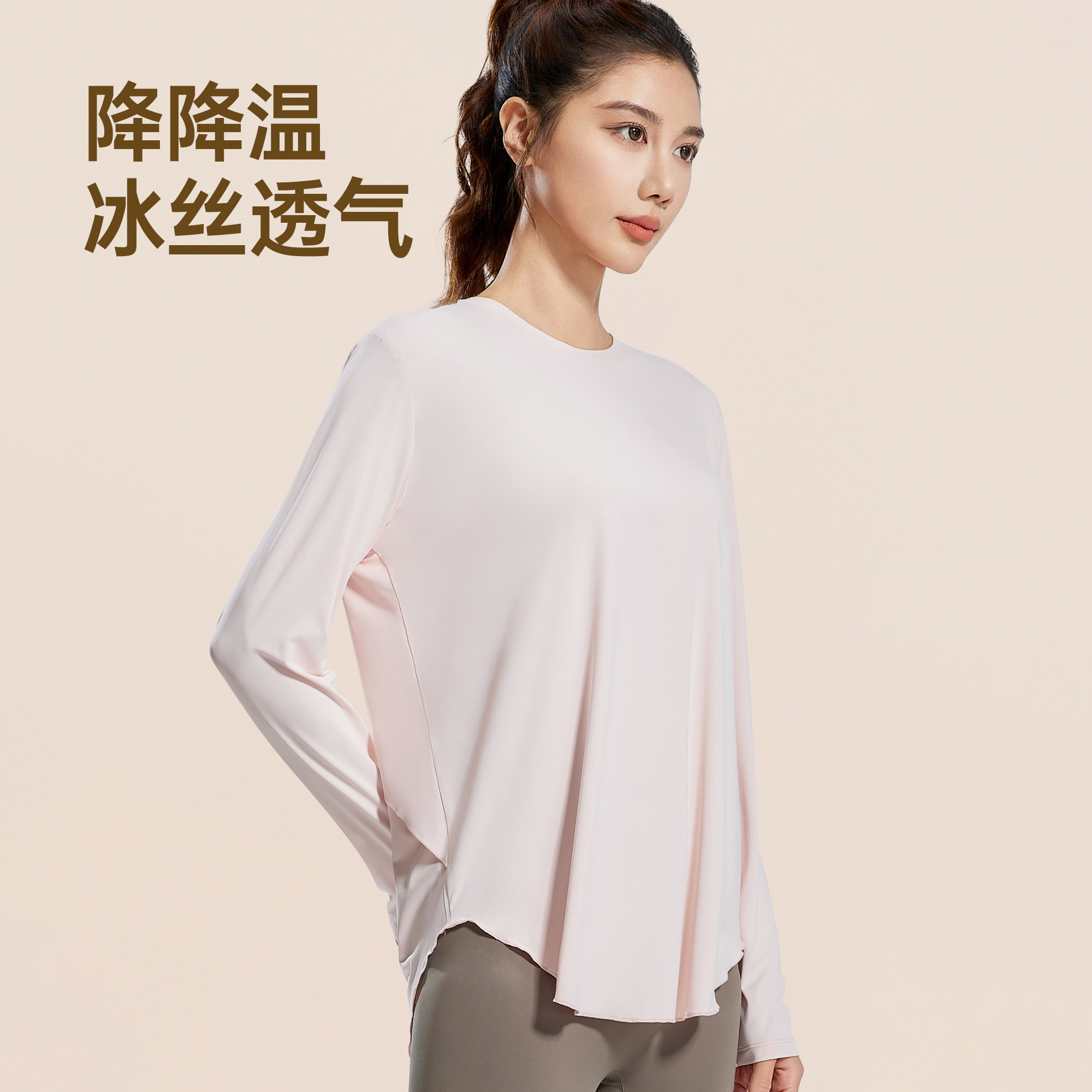 佑美瑜伽服女新款遮臀显瘦健身衣长袖上衣宽松圆领运动罩衫T恤