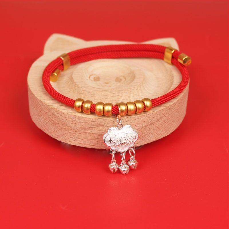 猫咪项圈狗狗猫项圈铃铛项圈无声长命锁红绳装饰宠物配饰兔子项圈