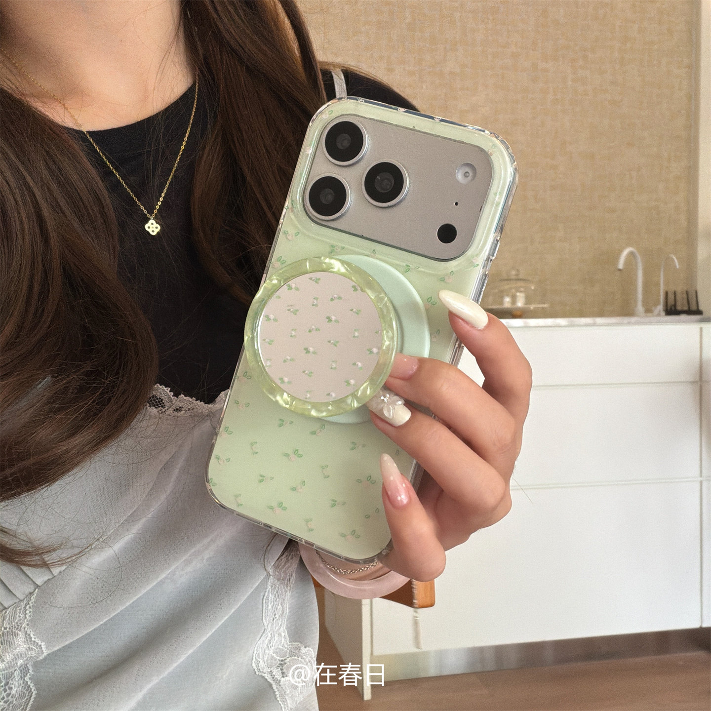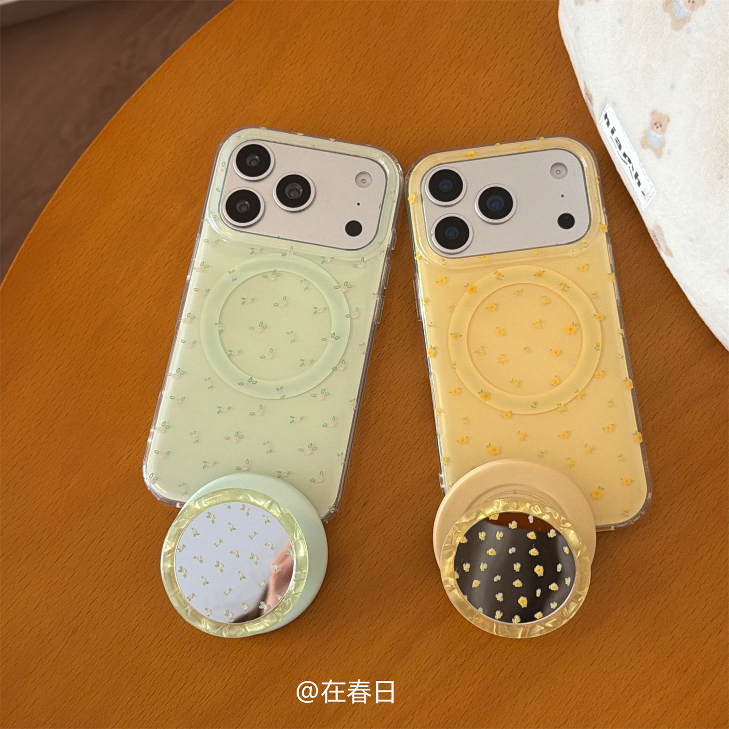 在春日甜美小清新黄绿碎花磁吸镜子支架适用iPhone17promax全包16promax女生15pro保护壳17pro苹果17
