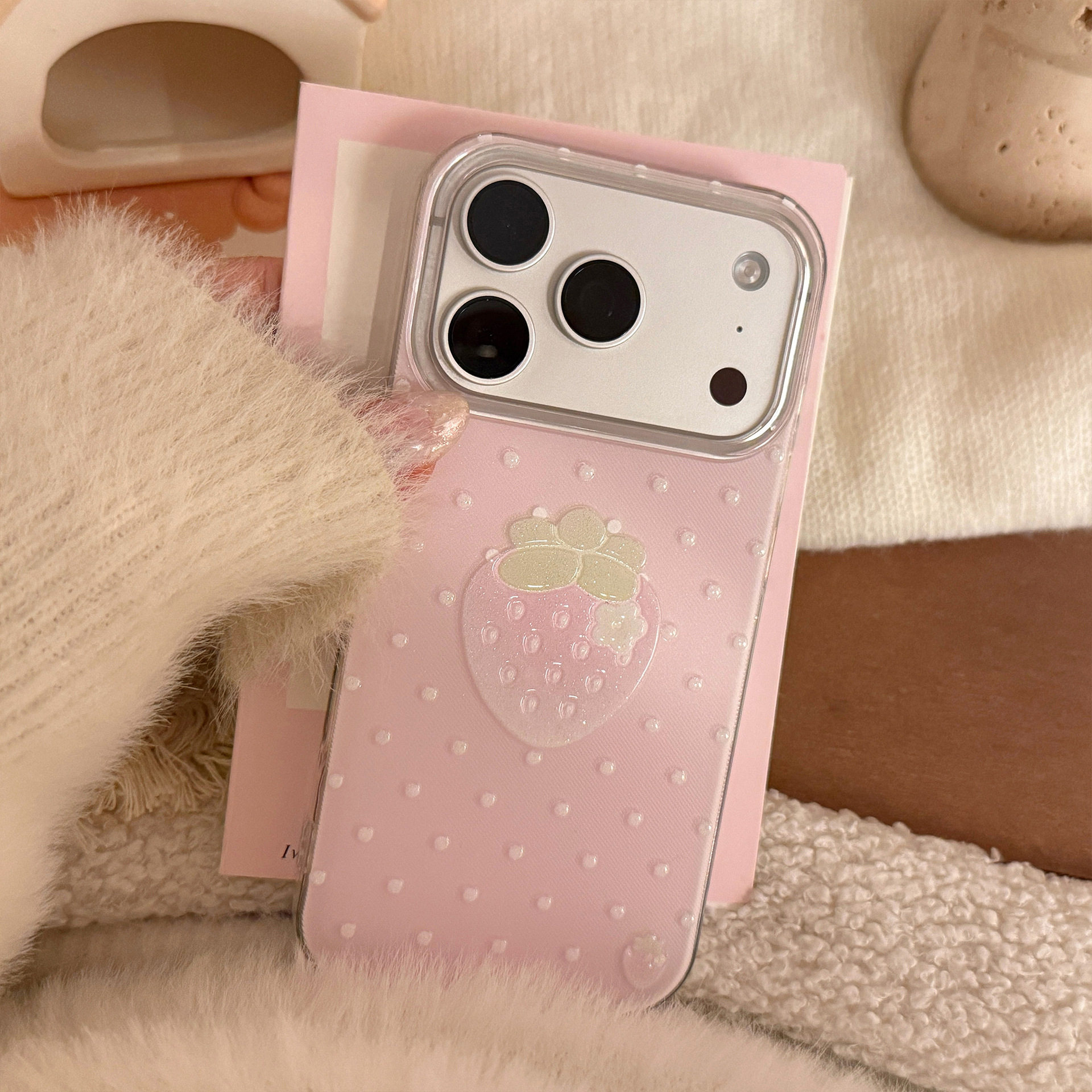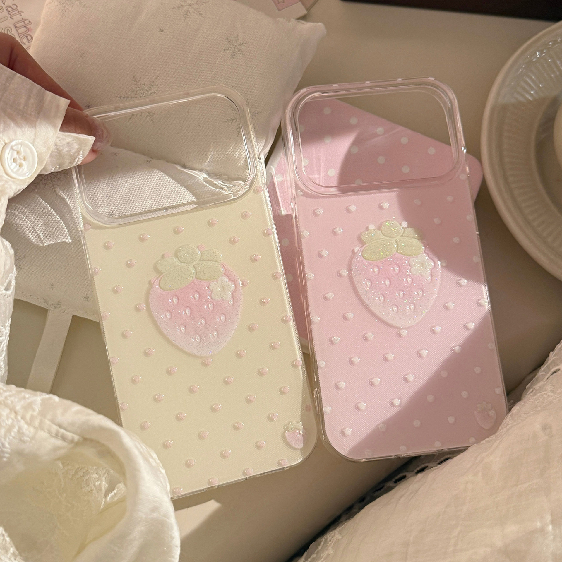 粉色草莓波点适用苹果17promax手机壳iPhone16plus/15pm/14por/13/12/11保护套新款女可爱清新高颜值甜美防摔
