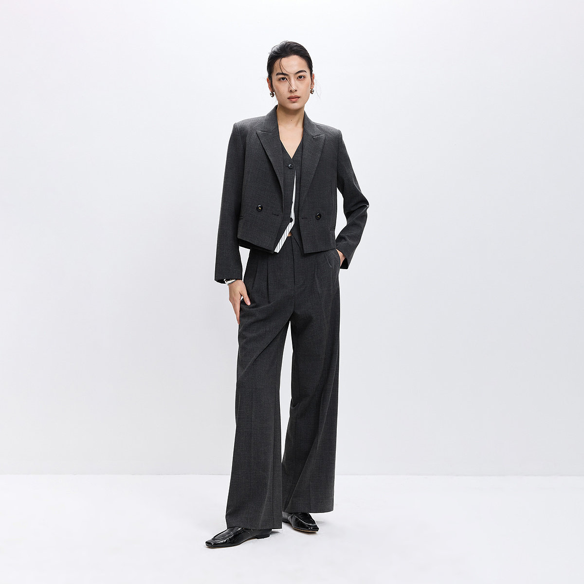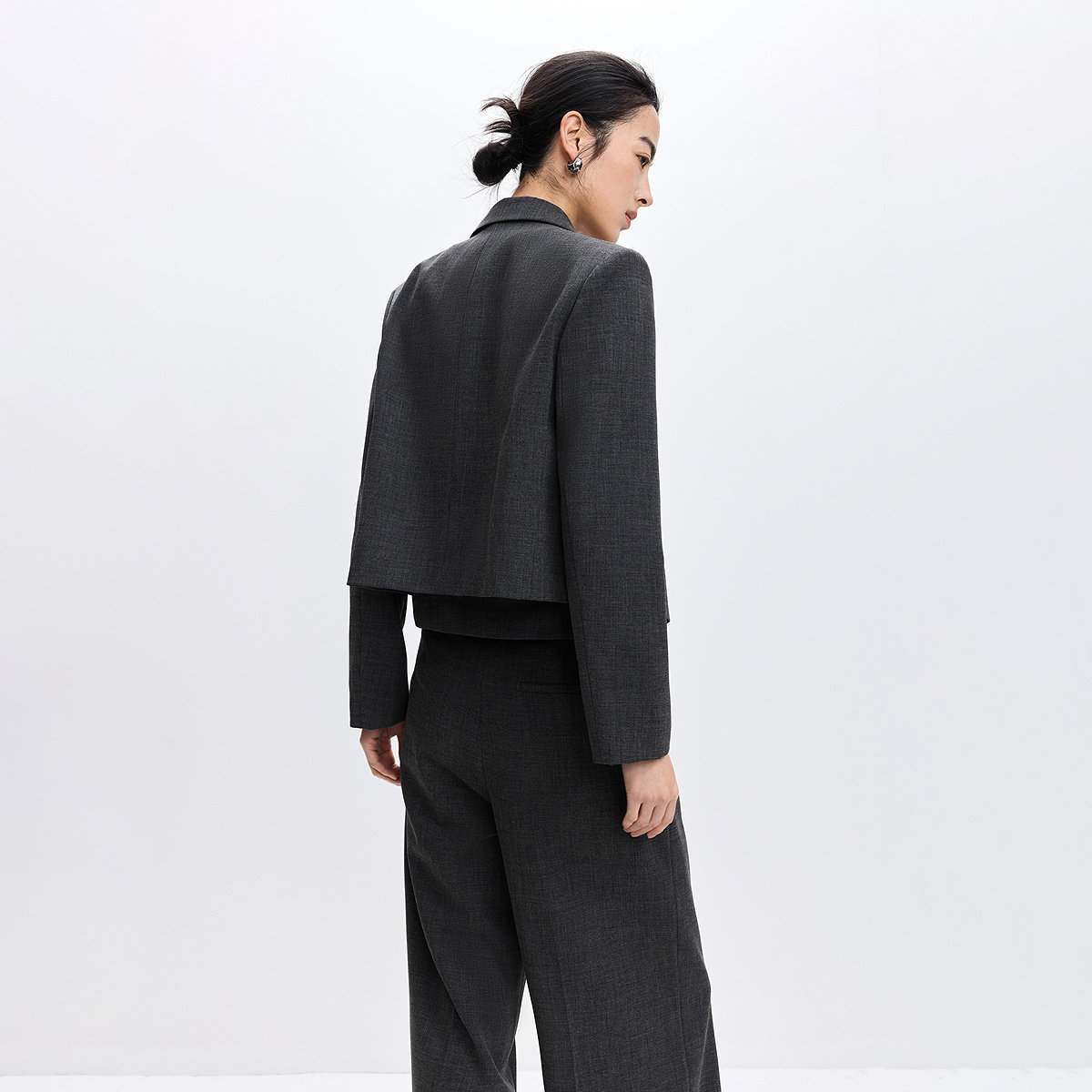 LILY2026春新款女装格雷系设计感戗驳领休闲气质通勤灰色西装外套