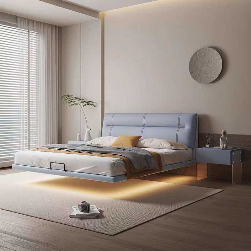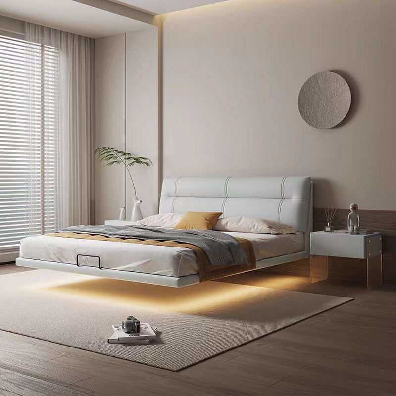 小户型悬浮床现代简约主卧室大床意式轻奢床双人床实木皮艺床婚床