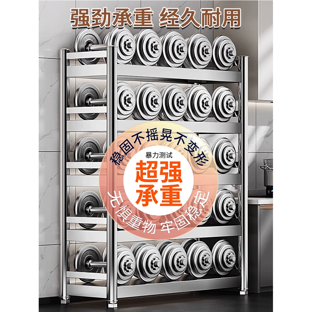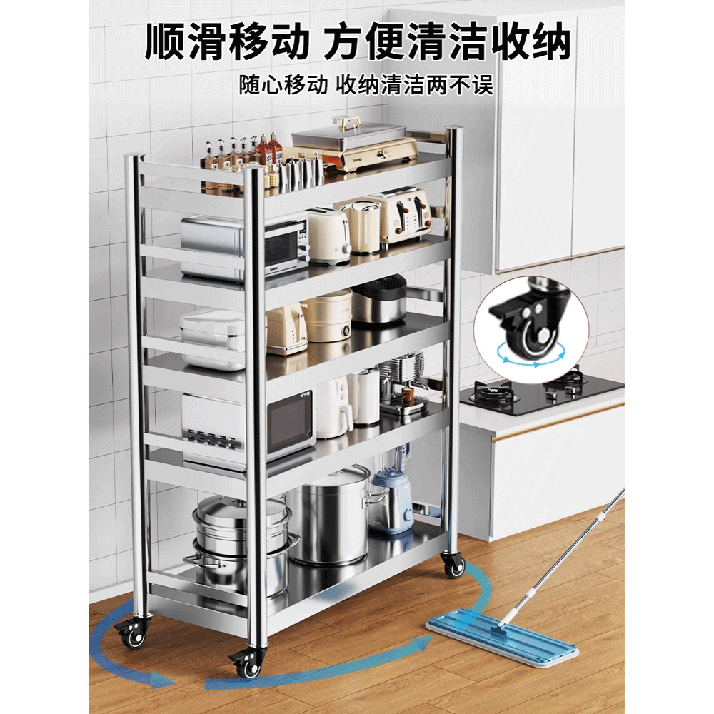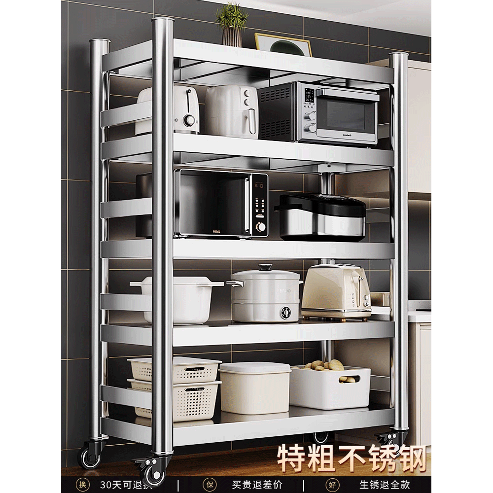 不锈钢厨房置物架落地多层微波炉收纳改造家用橱柜多功能储物货架