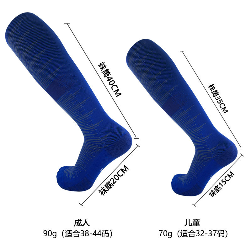 足球袜毛巾长筒过膝训练成人儿童专业吸汗防滑运动袜子白色蓝色