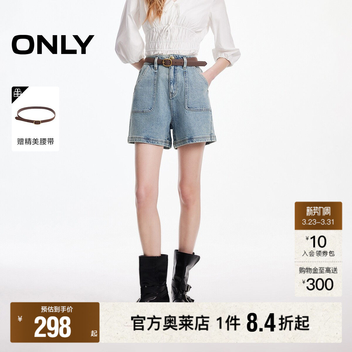 ONLY2026春季新款高腰对称工装风口袋A字复古洗水短裤牛仔裤女