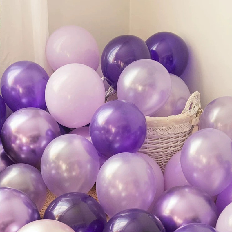10寸浅紫色气球马卡龙加厚乳胶浪漫生日开业装饰布置玫瑰金亮片