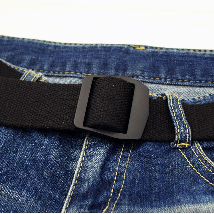 百搭黑色金属日字扣男女通用帆布腰带薄胖子加长大码军训皮带青年