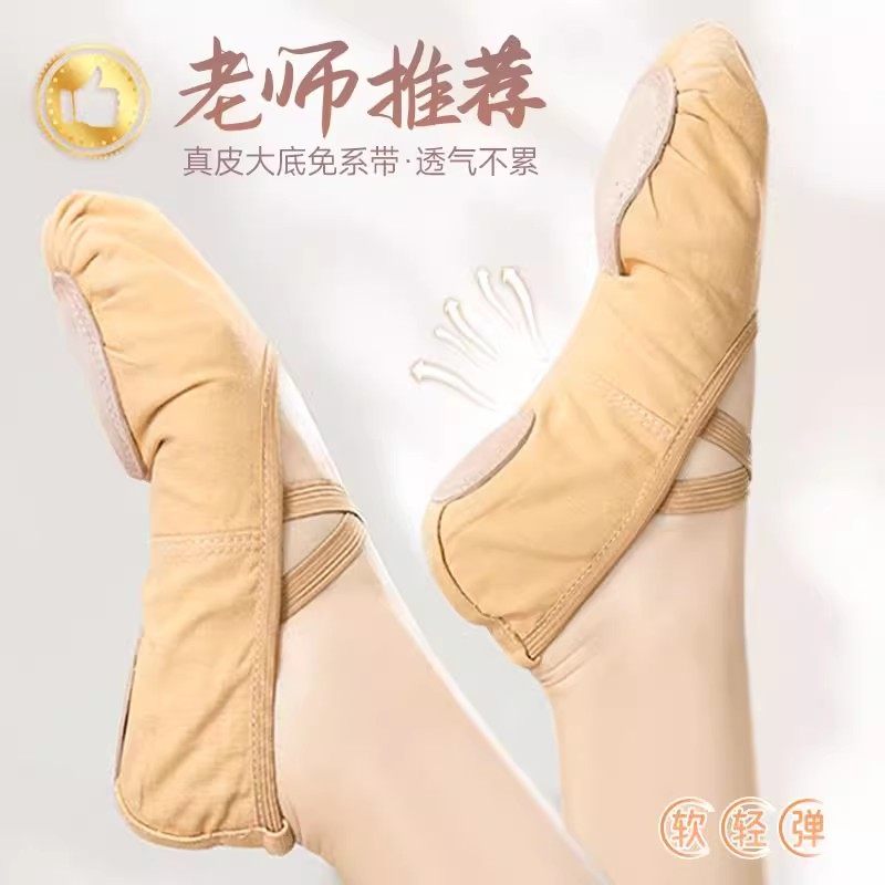 舞蹈鞋女软底芭蕾舞儿童成人中国舞鞋女童跳舞练功鞋真皮驼色猫爪